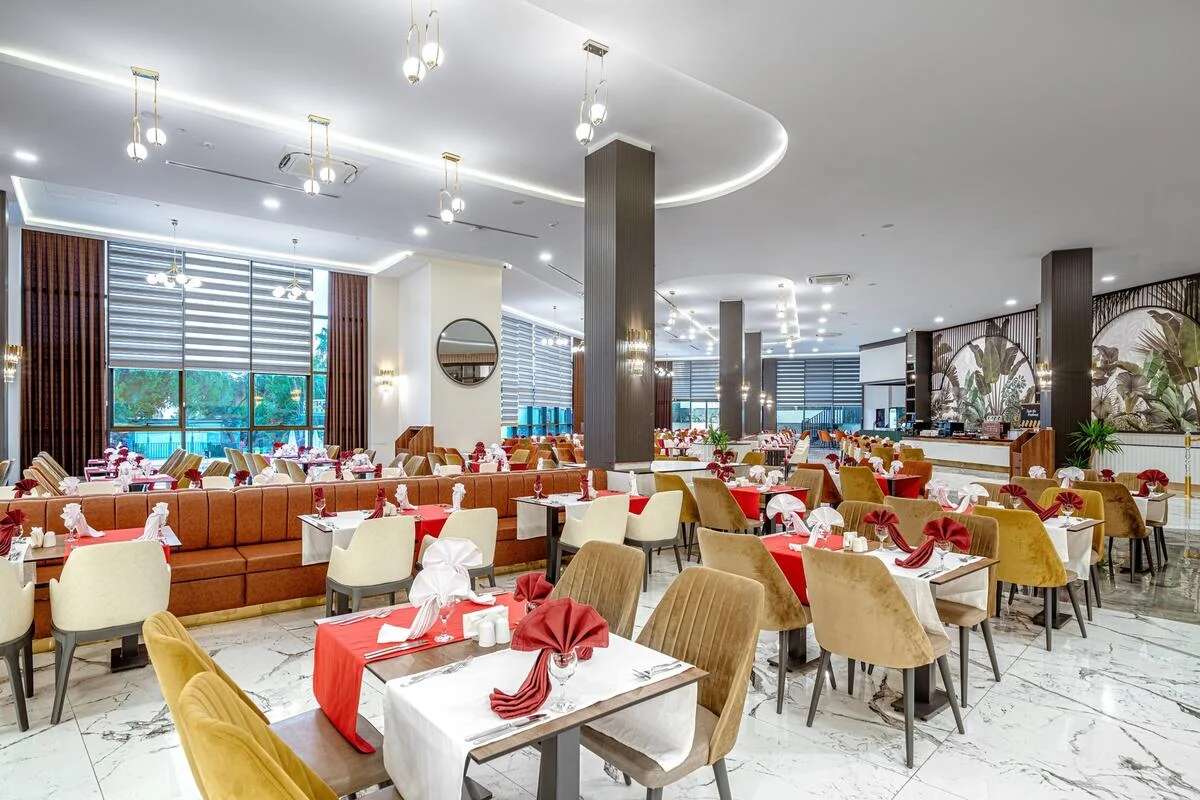 Ultra all inclusive ellátás: reggeli (7:00-10:00), késői reggeli (10:00-10:30), ebéd (12:30-14:00), vacsora (19:00-21:00), éjszakai snack (23:30-1:00) büfékínálattal