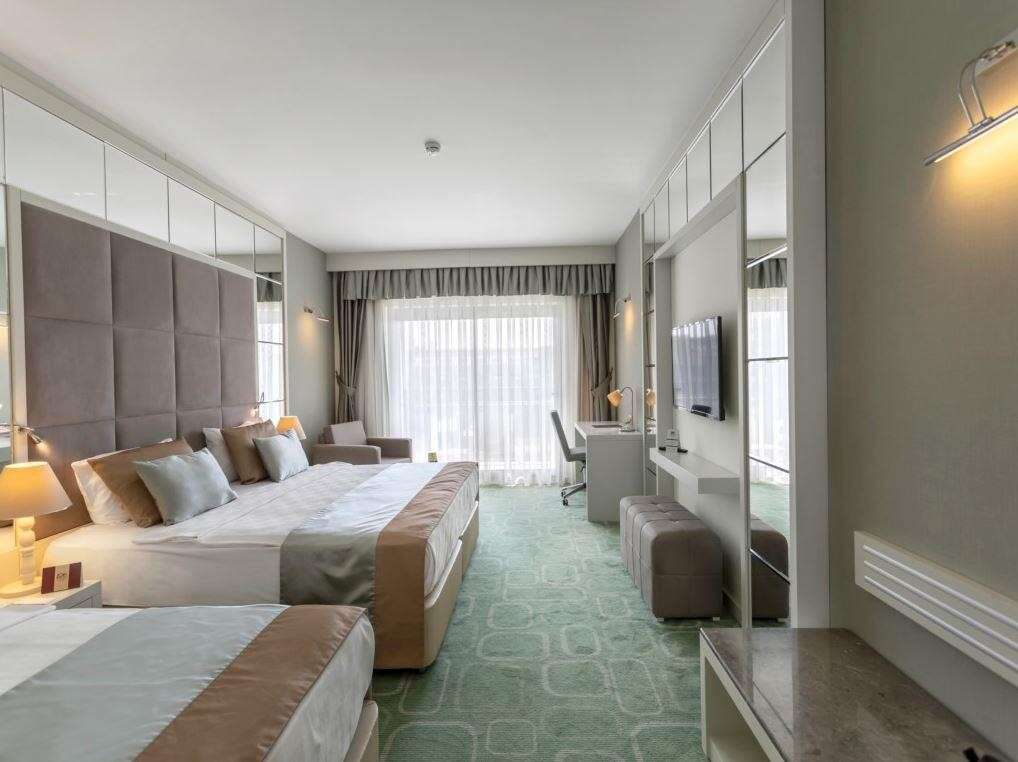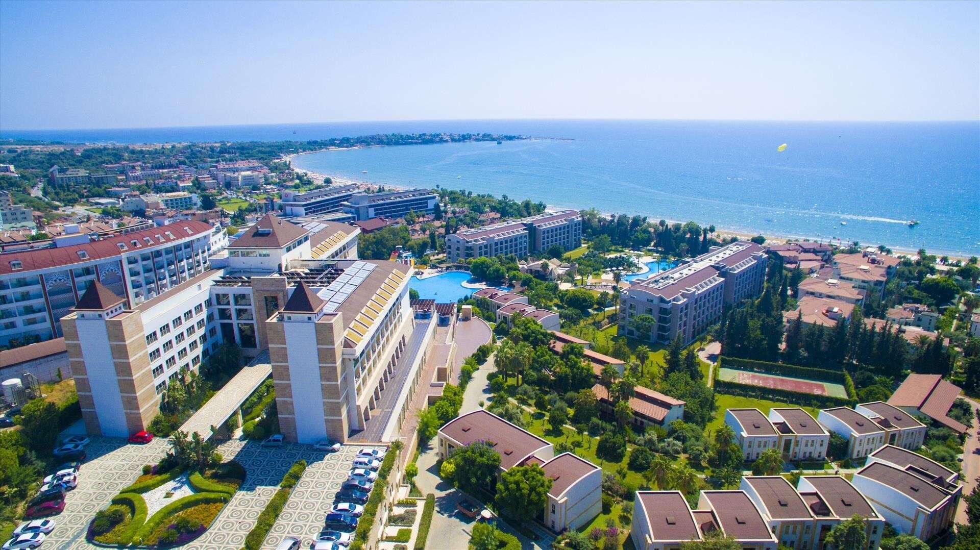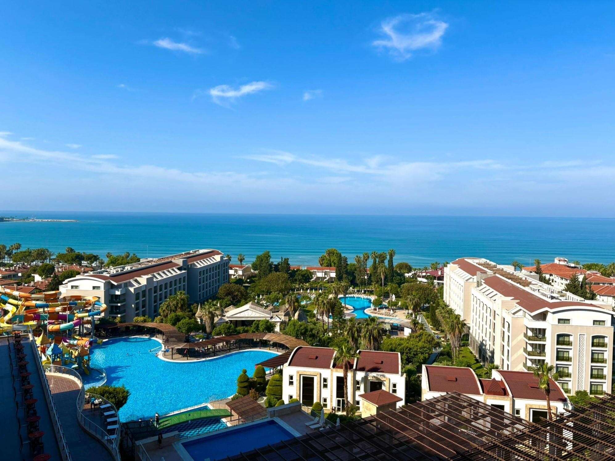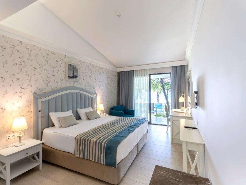 A szépen kialakított, 5 csillagos szálloda közvetlenül a tengerparton fekszik és saját aquaparkkal, valamint Ultra All Inclusive ellátással várja a vendégeket. Side óváros kb. 2 km-re helyezkedik el, amely a parti sétány mentén érhető el. Bevásárlási lehetőségek a közelben. Elsősorban gyermekes családok számára ajánljuk.