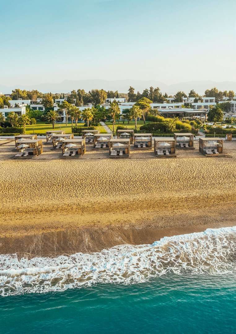 350 méter hosszú, érintetlen aranyhomokos paradicsomunk ötvözi a mediterrán esztétikát a ragyogóan kék tenger háttérének puszta szépségével, hogy egy felejthetetlen napot tölthessen el a tengerparton, amely megragadja a fantáziáját. A kristálytiszta víz által mosott, puha homok a rendelkezésére áll. Ideális úti cél az egész család számára, a tengerpart közelében található egy külön gyermekjátszótér, amely nyugodt pihenőhelyet biztosít a szülőknek és a pároknak. Napozzon a Földközi-tenger partján fekvő exkluzív strandunkon, pihenjen a privát kabinokban, merüljön el tágas úszómedencénkben, és fedezze fel a végtelenül tágas, eldugott pihenőhelyeke. Privát strandélmény pezsgővel és Cabana menüvel... Pezsgő Friss narancslé Friss gyümölcsök Sütemények és torták Alkoholos és alkoholmentes italok Cabanák különleges szolgáltatással: 10:00 - 18:00 A cabanák felár ellenében vehetők igénybe. Privát cabanáját a vendégszolgálaton keresztül foglalhatja le.