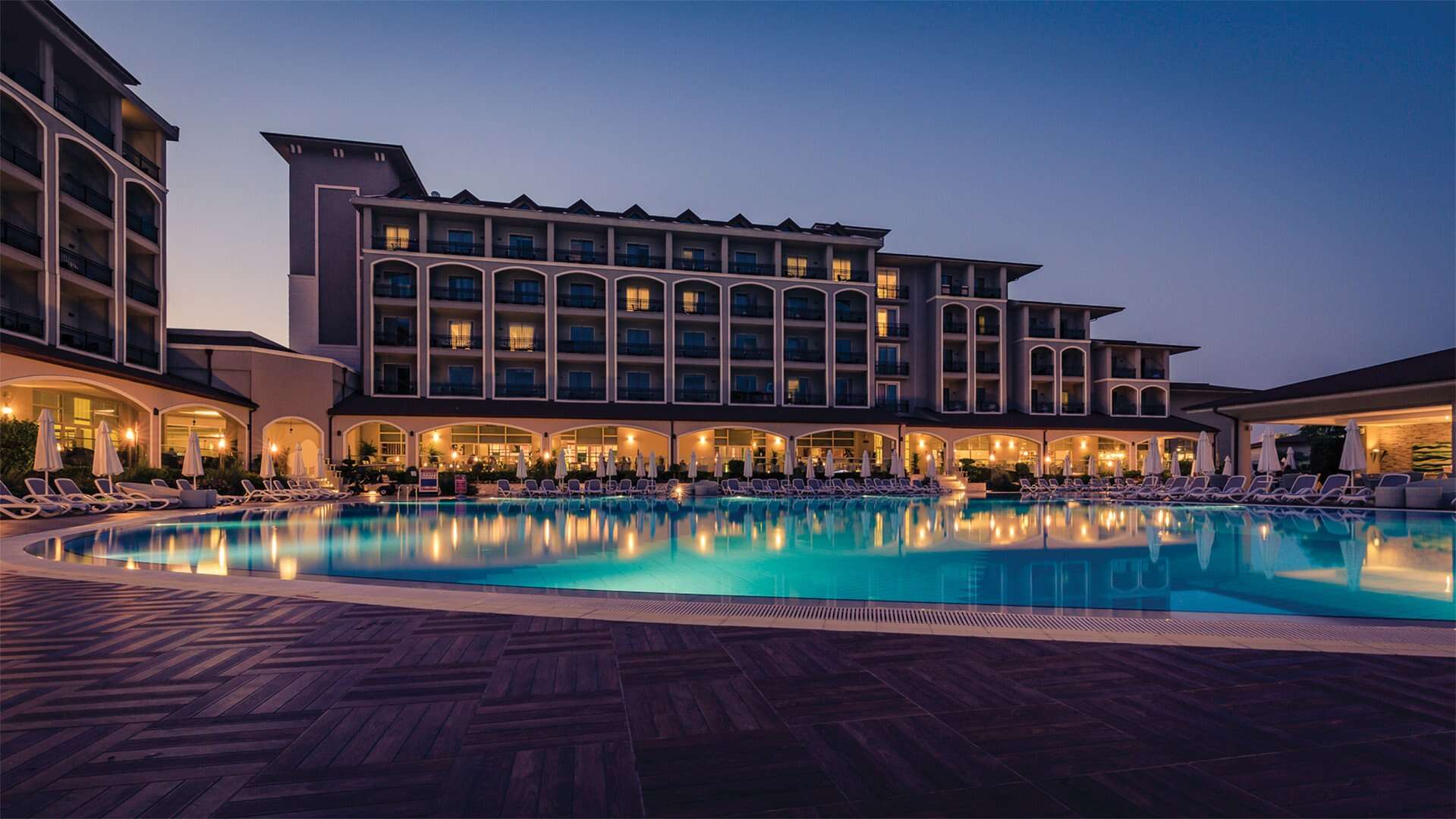 Ötcsillagos üdülőhotel, 482 szobával, modern dizájnnal és exkluzív kialakításokkal. Nagy lobbyval és recepcióval, konferenciatermekkel, ingyenes Wi-Fi-val közösségi terekben és szobákban, hitelkártyákat elfogadva. Fodrász, mosoda, üzletek, szobaszerviz szolgálnak ki. Fedett medence, kültéri medencék, gyermekmedence, szauna, törökfürdő (hammam) és fitneszterem is elérhetők.