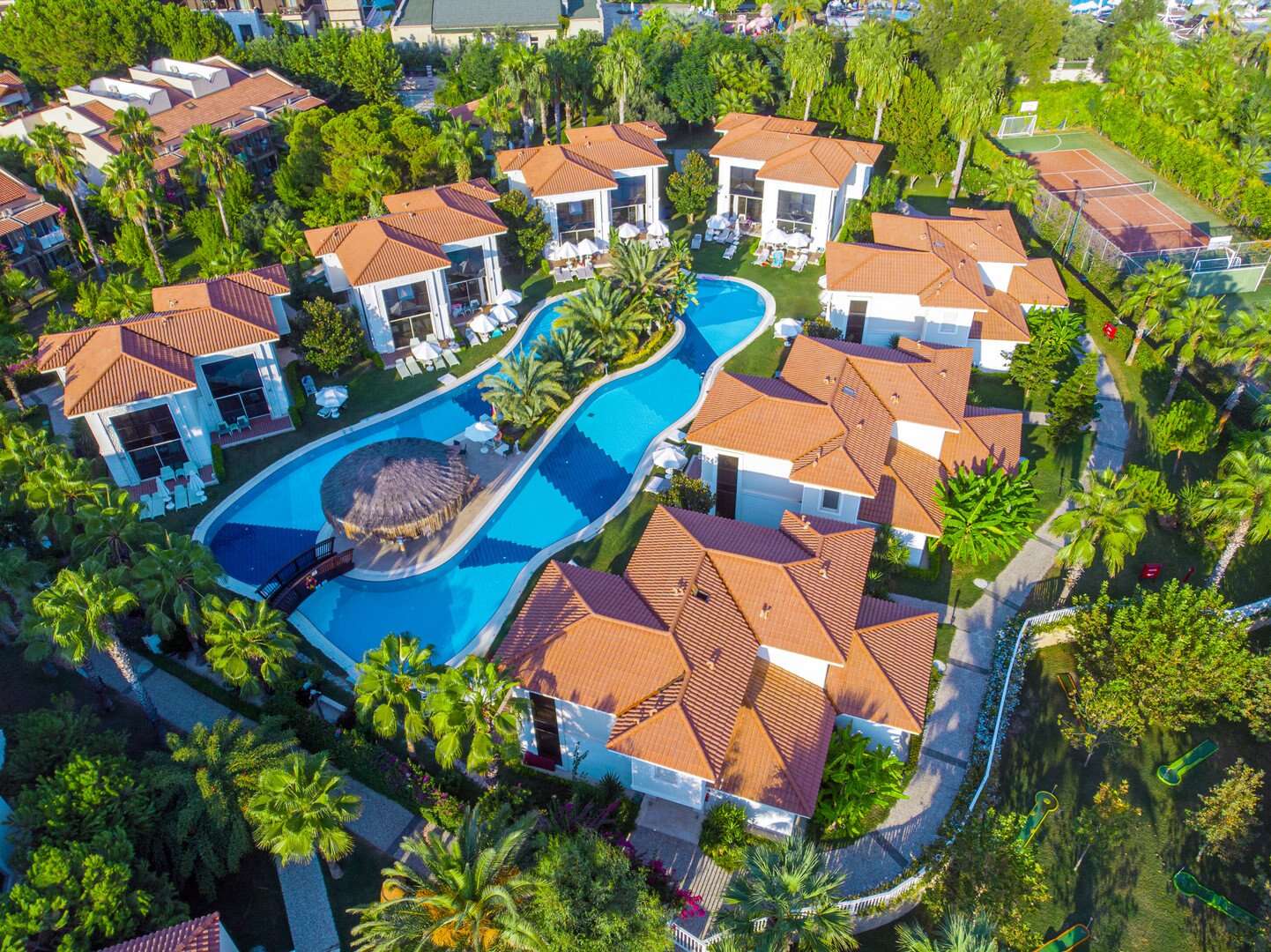 A szobák modern stílusúak, légkondicionáltak, minibárral, széffel, síkképernyős TV-vel, fürdőszobával zuhanyzóval és hajszárítóval. A legtöbb szoba erkéllyel rendelkezik, részben tengerre néző kilátással. Térfogatosabb opciók között négyágyas szobák, családi szobák és exkluzív Lake Villák is elérhetők privát medencével.