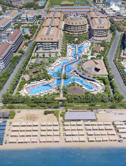 SZOLGÁLTATÁSOK: kültéri medencék napozóágyakkal és napernyőkkel • beltéri medence • aquapark • éttermek • 9 bár (lobby, medence, tengerpart stb.) • cukrászda • nappali és esti animációs programok • esti show-műsorok • török esték • élőzene • diszkó • törökfürdő • jacuzzi • szauna • gőzfürdő • fitneszterem • gimnasztika • táncórák • step-aerobik • boccia • strandröplabda • vízi torna • vízilabda • darts • teniszpálya • wifi