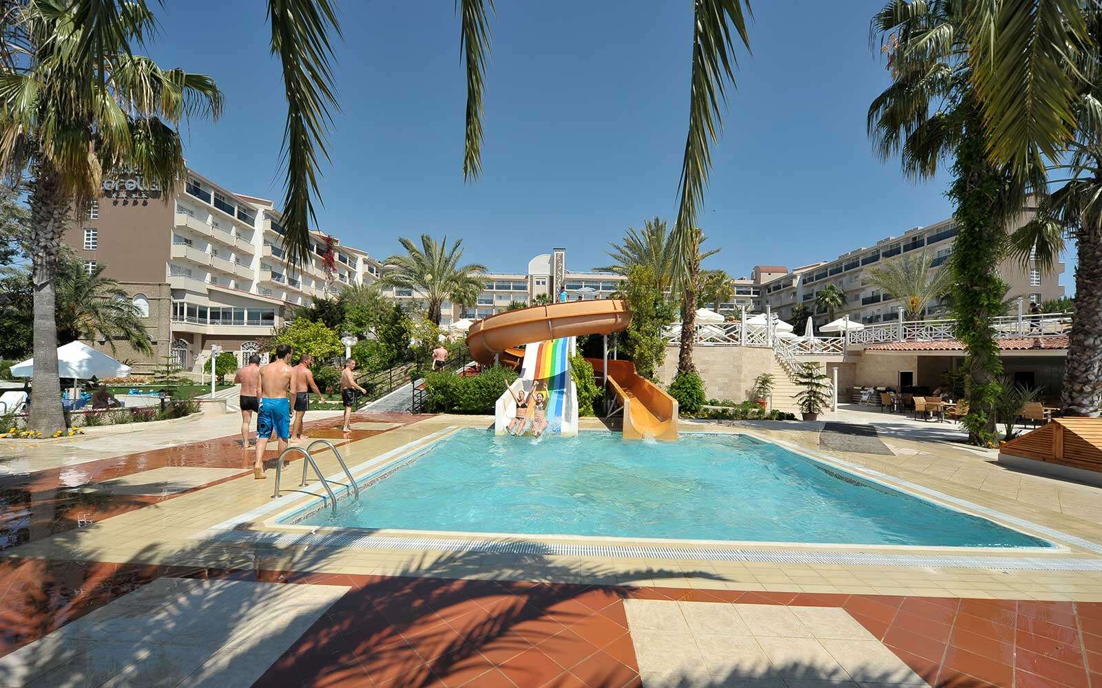 3 medence napernyőkkel és napozóágyakkal, gyermekmedence, 2 csúszda, belső medence gyermekrésszel, 3 étterem, 5 bár, nappali és esti animációs programok, élő zene, disco, alkalmanként török est, miniklub (4-12 évig), játszótér, minidiszkó, gyermekprogramok, török fürdő, szauna, fitneszterem, boccia, aerobik, vízi torna, strandröplabda, WIFI a lobbyban.