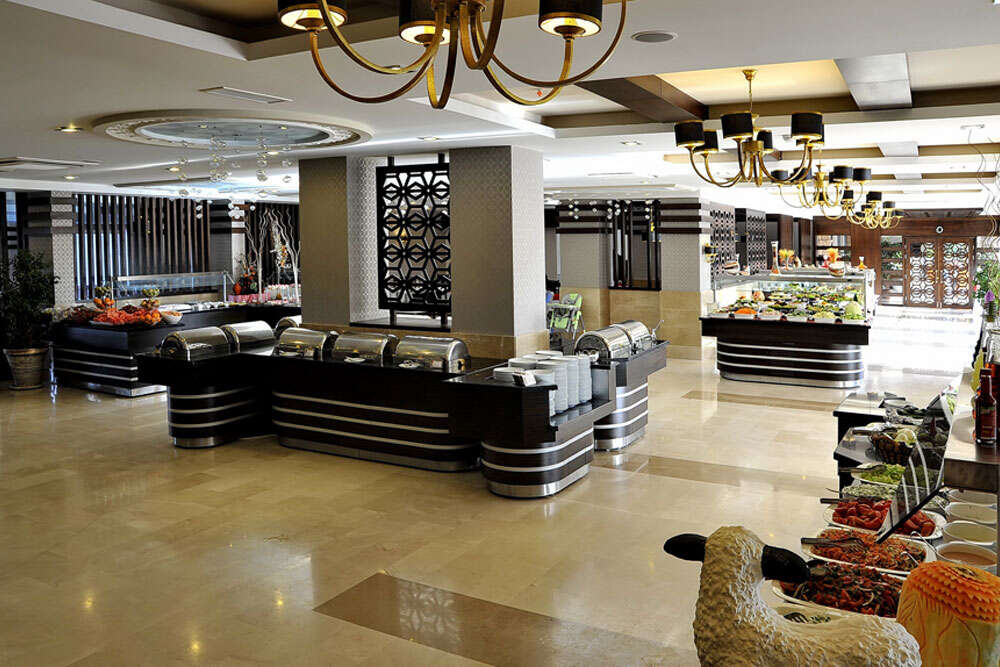 All inclusive: reggeli, ebéd és vacsora büférendszerben, délutáni snackek, gözleme és fagylalt bizonyos időpontokban, éjféli snack (23:00-23:30 között), kávé/tea/sütemény, 2 a’la carte étterem (török és olasz; a tartózkodás ideje alatt egy alkalommal, előzetes foglalással), helyi alkoholos és alkoholmentes italok (10:00-24:00 között), naponta víz a minibárból.