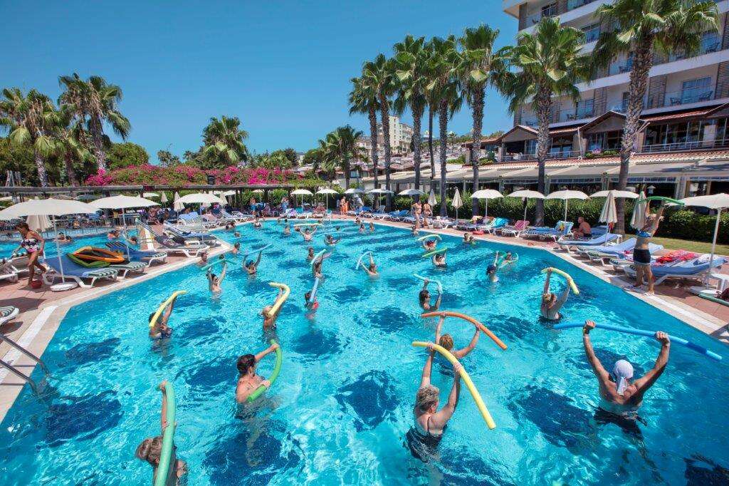 Két medence, beltéri medence, nappali és esti animációs programok, professzionális zenés táncos showműsorok, élő zene, törökfürdő, szauna, Wifi elérhetőség a közösségi terekben, fitneszterem, vízi torna, vízilabda, strandröplabda, aerobic, sport programok, asztalitenisz, boccia, teniszpálya és felszerelés.
