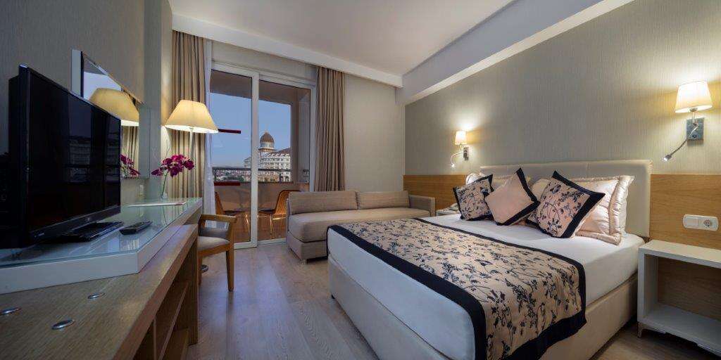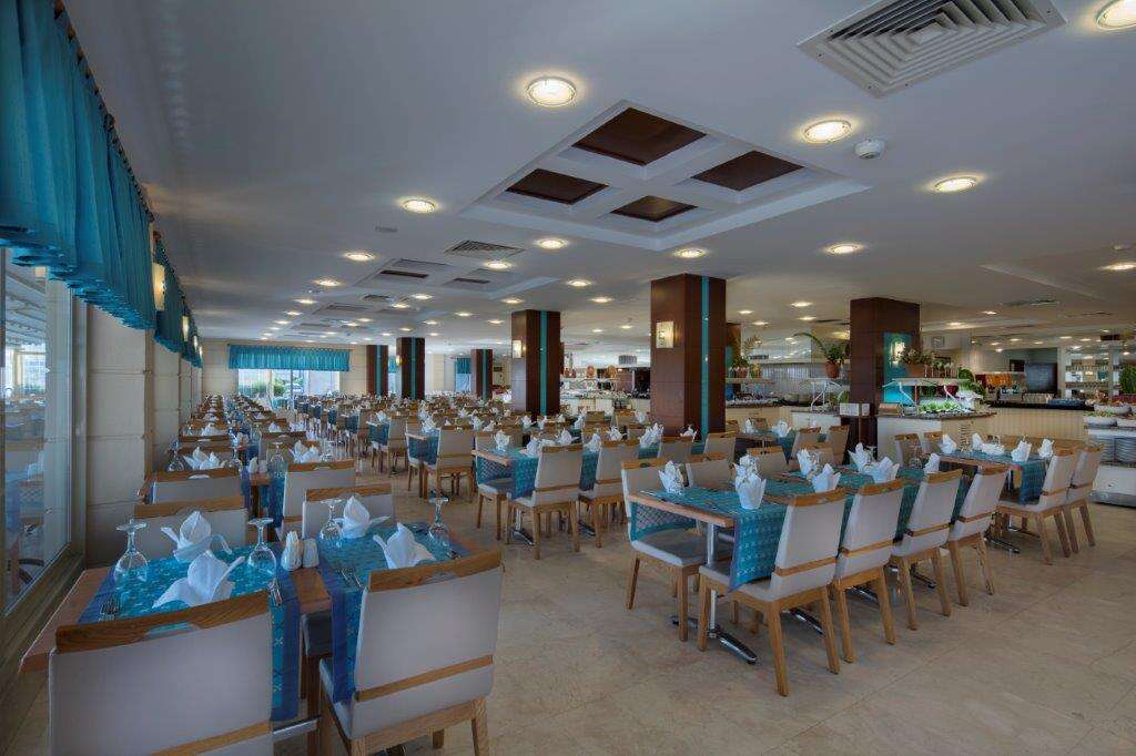 All Inclusive: Reggeli, ebéd és vacsora büférendszerben, késői reggeli (10:00-10:30) és késői vacsora menük (21:00-02:00), éjjeli snackek (02:00-07:00), palacsinta, gözleme és fagylalt bizonyos időpontokban, kávé/ tea és sütemények, helyi alkoholos és alkoholmentes ital (10:00-24:00), 4 a’la carte étterem (olasz, török, mediterrán és nemzetközi a tartózkodás során 1 alkalommal, előzetes asztalfoglalással), minibár naponta vízzel és üdítővel feltöltve.