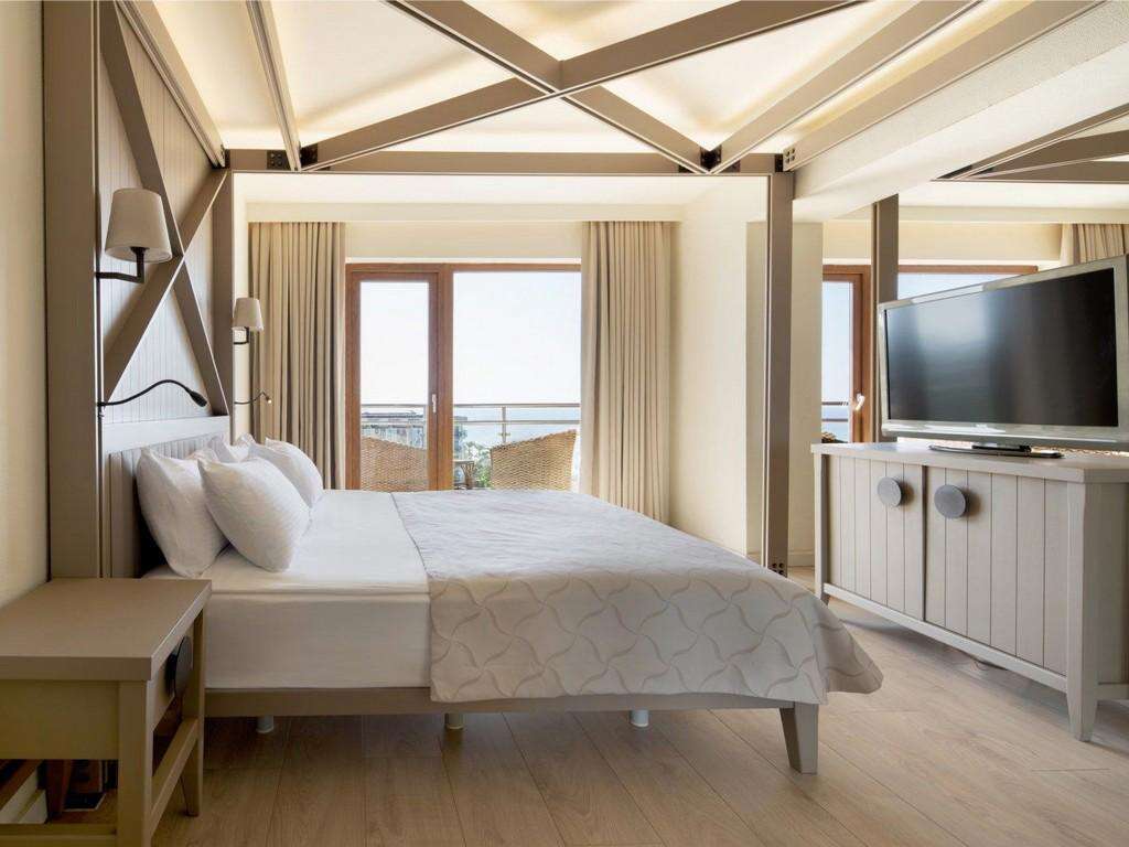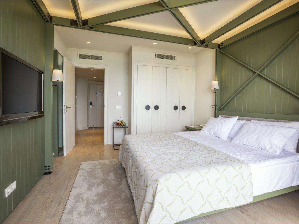 SZOBÁK: 508 szoba • erkély • légkondicionáló • hajszárító • telefon • műholdas TV • minibár (naponta feltöltve üdítőitalokkal, sörrel és snackkel) • tea- és kávékészítő szett • széf • fürdőköpeny és papucs • wifi • standard szobák: kb. 31 m², max. 2+2 vagy 3+1 fő részére, tájra vagy tengerre néző kilátással • családi szobák: kb. 50 m², max. 4+1 fő részére, 2 külön hálószoba összekötő ajtóval • standard bungaló szobák: kb. 35 m², max. 3 vagy 2+2 fő részére, melléképületben találhatóak • családi bungaló szobák: kb. 53 m², max. 4+1 fő részére, 2 hálószoba, melléképületben találhatóak