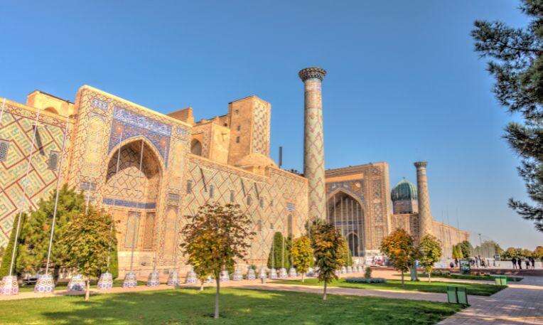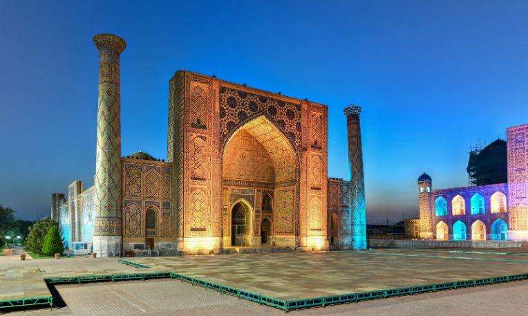 Városnézésünket a Shaki Zindeh komplexum (11–15. század) megtekintésével kezdjük, amely egy gyönyörűen és gazdagon díszített mauzóleumegyüttes. Eddig még nem szóltunk a kék csempékről, az árnyalatokról, a színek tobzódásáról és a mesébe illő épületek büszke tartásáról - ez Szamarkand! Utunk következő állomása a csodálatos Bibi Khanum mecset, amely valaha Közép-Ázsia legnagyobb mecsetje volt, ezáltal Szamarkand egykori dicsőségének szimbóluma. Majd a világ egyik legszebb terét, a Regisztan teret, és az ott lévő Ulugbek, Shir-Dor és Tilya-Kori medreszéket tekintjük meg. Végül a fenséges Gür Emir-mauzóleumot, Timur Lenk arannyal gazdagon díszített végső nyughelyét tekintjük meg.