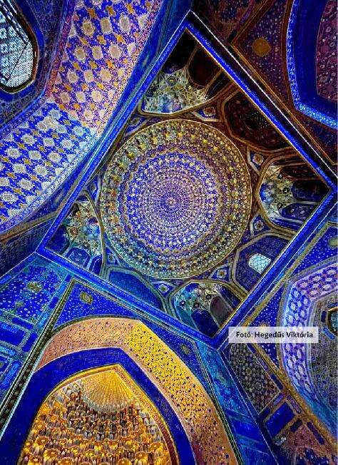 Kora délutáni érkezés Szamarkandba. Városnézés: Gür Emír mauzóleum, Bibi-Khonum mecset, látogatás a bazárban. Majd a világ egyik legszebb terét, a Regisztan teret, és az ott lévő Ulugbek, Shir-Dor és Tilya-Kori medreszeket tekintjük meg. Vacsora egy helyi étteremben, a szállás elfoglalása.