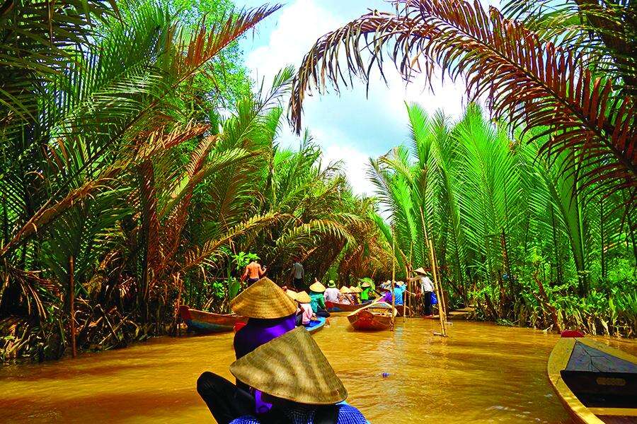 Reggelit követően autóbusszal a Mekong-folyó deltájához utazunk, ahol a Tien folyón hajózva a Sárkány-, az Unikornis-, a Teknős-, és a Főnix-szigetekkel ismerkedünk. A folyó mellékcsatornáira letérve közelebbről is megismerhetjük az ott lakók életét. A Sárkány és Unikornis szigeteken banán, pomelo, mandarin és mangó ültetvények között sétálunk. A Teknős- szigeten bemutatják nekünk a tipikus vietnami kókuszcukorka készítését és különböző ízesítésben, melyeket természetesen kóstolunk is. Délelőtt jut még időnk a Vinh Trang pagoda megtekintésére is My Tho mellett!  Ebédünket a környék specialitásaiból összeállított menüsor adja a mai napon egy csodálatos környezetben lévő étteremben. Utána Saigonba utazunk vissza. Este vásárlási lehetőség az éjszakai piacon.