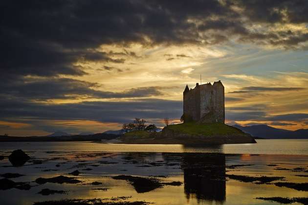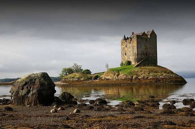 A kastély nem más, mint egy négyemeletes toronyvár. Skócia nyugati partjainál található, kb. 35 km-re északra Oban városától. A neve a kelta vadász (Stalcaire) szóból ered. A kastély elődjének építését 1320-as évekre teszik, ekkor a MacDougal klán birtokolta. A mai formáját a 14 század közepén nyerte el. Állítólag IV. Jakab skót király is gyakran látogatta és vadászkastélynak használta. A történelem során számtalanszor cserélt gazdát a különböző skót klánok állandó háborúskodása következtében. Ma a vár magántulajdonban van és az év csak néhány napján látogatható a szerencséseknek. Előzetes bejelentkezés szükséges, ezért jó előre le vannak foglalva a szabad helyek.