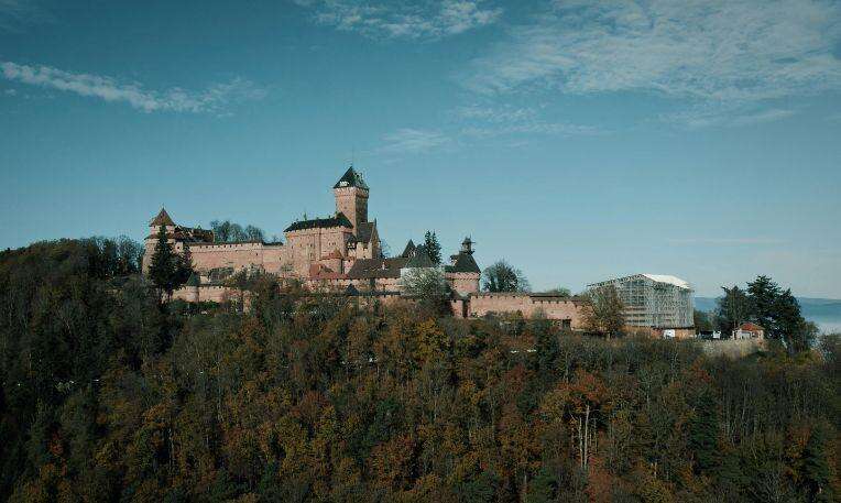 Innen folytatjuk utunkat a közeli Haut-Königsbourg várhoz, amely a Vogézek egyik ikonikus nevezetessége. Ez a lenyűgöző, több mint 700 éves erődítmény a középkori hatalmat és gazdagságot idézi meg. Falai között sétálva megelevenedik a középkor világa, a fegyverek kiállítása és a korabeli bútorok pedig izgalmas bepillantást engednek a lovagok és nemesek életébe. Tornyából lélegzetelállító kilátás nyílik az alatta elterülő szőlőültetvényekre, erdőkre és a Rajna völgyére – tiszta időben még a Fekete-erdő is látható.