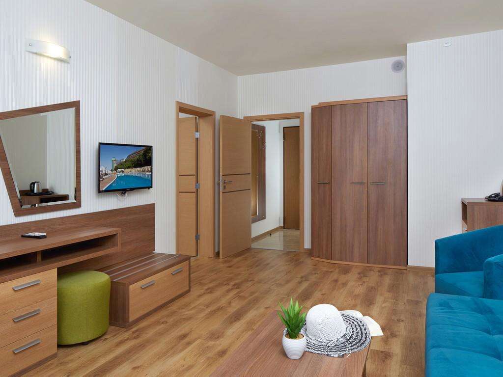 SZOLGÁLTATÁSOK: szabadtéri medence napernyőkkel és napozóágyakkal • napozóterasz • főétterem • Glamour étterem a parton • medence bár • Bowling bár • Joy bár • lobby bár tengerre néző kilátással • amfiteátrum • nappali és esti animációs programok • parkolás • wifi a lobbyban és a szobákban