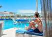 Swim Up" szoba a kerti bungaló épületekben található, hasonlóan berendezett, földszinti elhelyezkedésű, a teraszon (privát napozóágyak) keresztül közvetlen medencekapcsolattal rendelkezik.