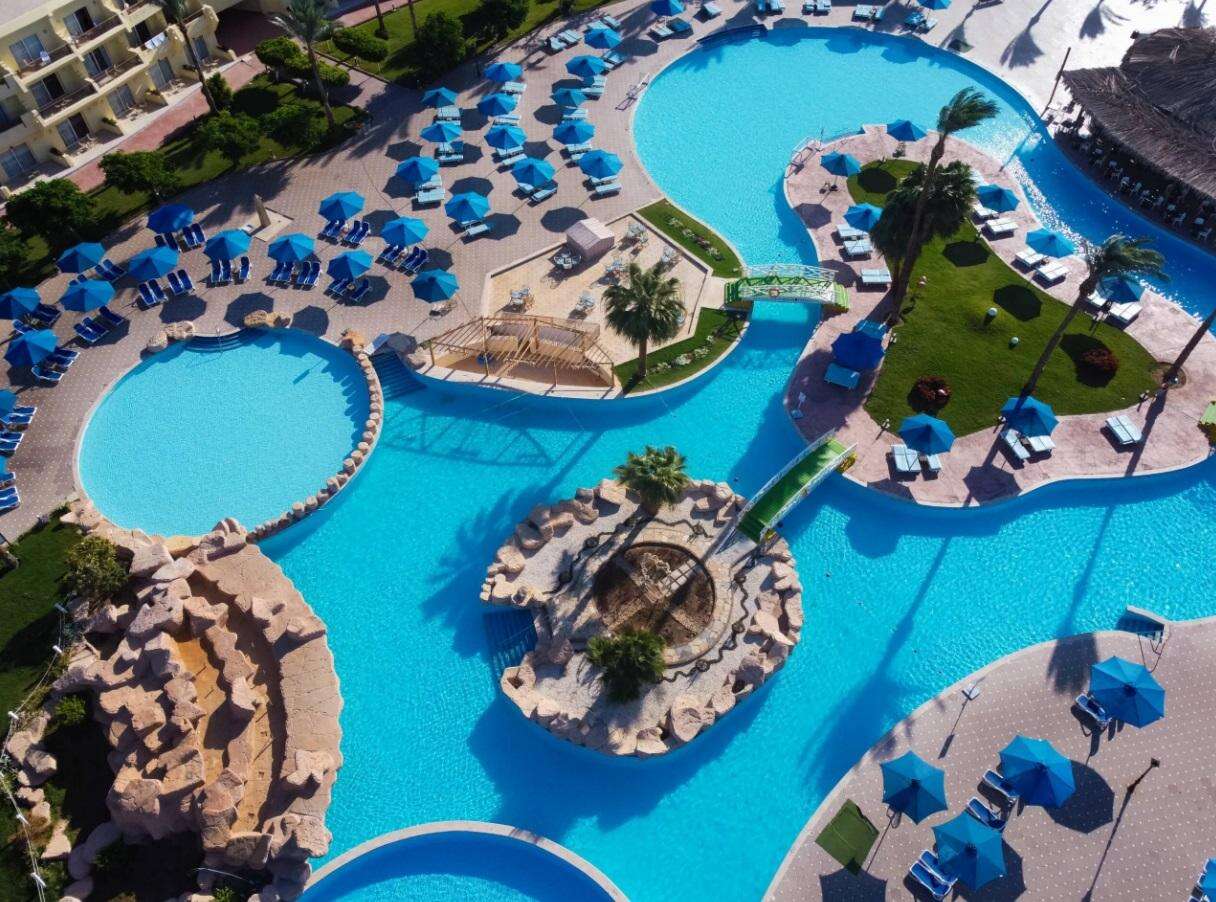 A Sharm El Sheikh Nemzetközi Repülőtér kb. 9 km-re, a Naama-öböl kb. 19 km-re helyezkedik el. A hotel kb. 11 km-re fekszik a Tiran-szigettől, a Ras Mohamed Nemzeti Parktól pedig kb. 40 km-re. A hotel saját homokos stranddal rendelkezik. A Relax épület – amely az Amwaj Oyoun komplexum különálló, de annak részét képező épülete – mindössze kb. 300 méter távolságra található. A Relax épület kb. 500 méterre helyezkedik el a strandtól.