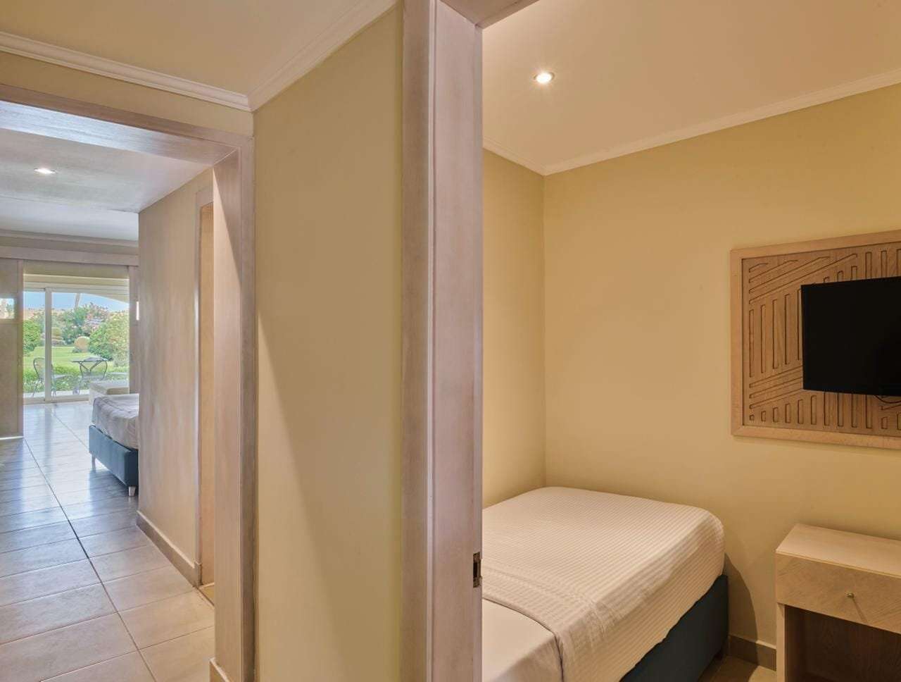 A családi szoba maximum Méret 46 m² (FZ) 4 fő (2 felnőtt + 2 gyermek) részére ideális, tágas és átgondoltan kialakított, franciaággyal, két kanapéággyal és saját, bútorozott erkélyével, valamint légkondicionálóval, zuhanyzóval, minibárral, széffel, TV-vel, tea- és kávéfőzővel, hajszárítóval és a hálószobában elválasztófallal rendelkezik.