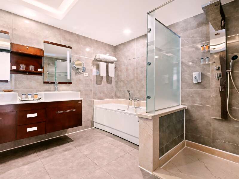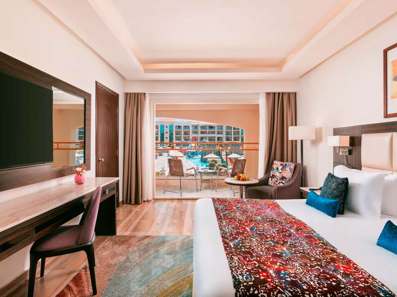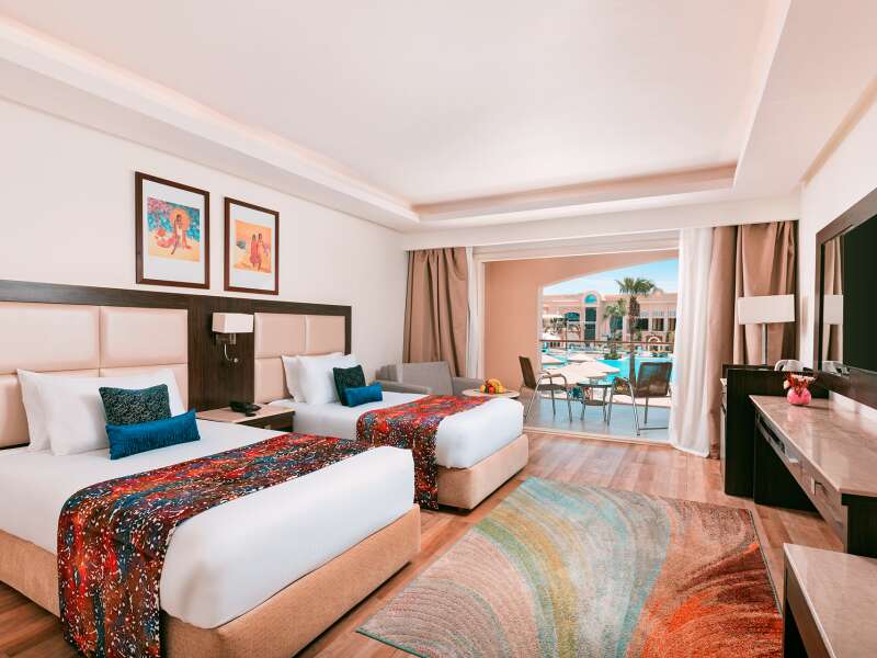 SZOBÁK: Kényelmes deluxe szobák (kb. 40nm2)  zuhanyzóval, WC-vel, hajszárítóval, telefonnal, légkondicionálóval, műholdas TV-vel, széffel, WiFi-vel, vízforralóval, minibárral és erkéllyel . A deluxe szobák foglalhatóak  kilátással a medencére (DXP), vagy oldalról tengerre néző (DXQ/EXQ) vagy közvetlen tengeri kilátással is (DXM/EXM). A medencére néző junior lakosztályok (kb. 70 nm) (DJP) egy nagy hálószobából és egy tágas ülősarokból állnak. Ezek tengerre néző kilátással is foglalhatók (DJM).