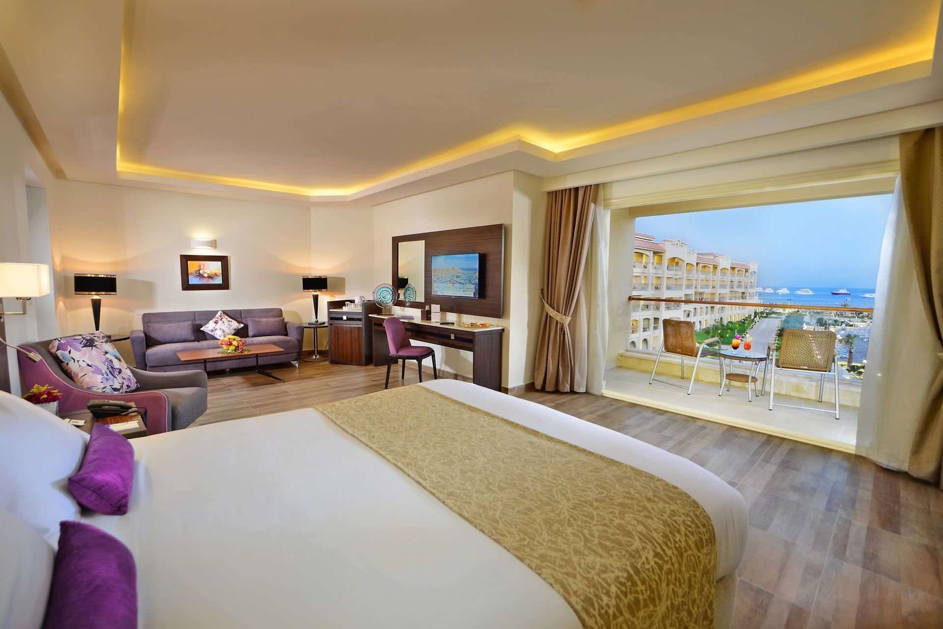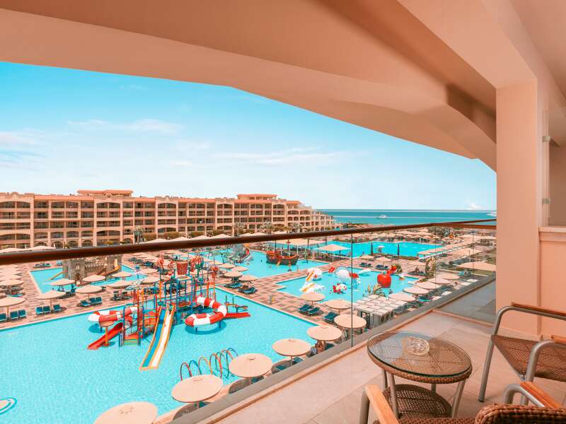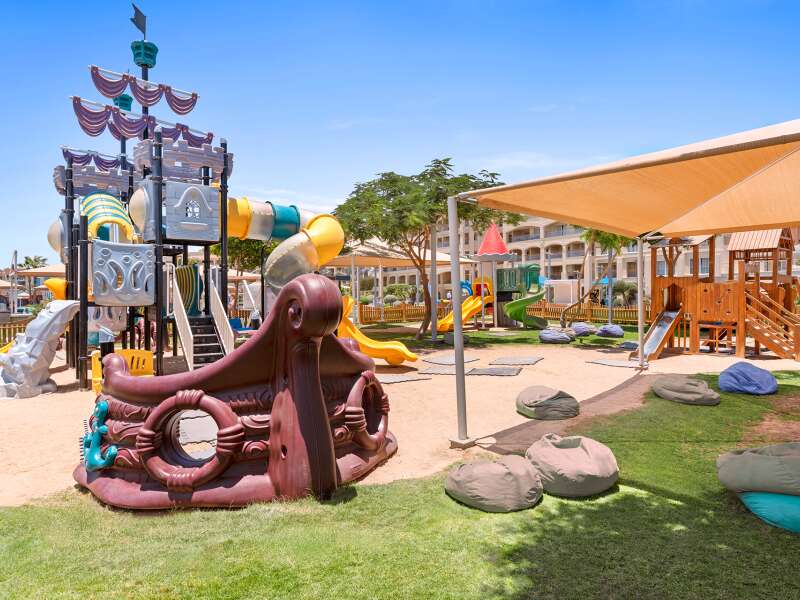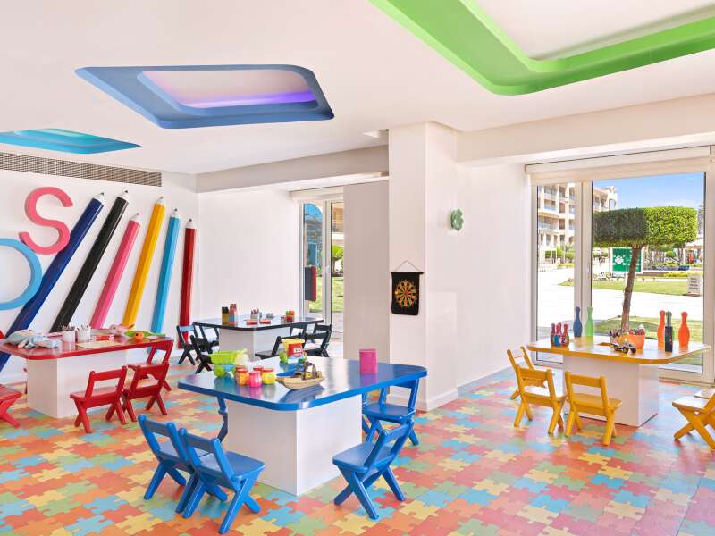 Az üdülőkomplexum 473 szobából áll, 1 főépületben és 2 szárnyban helyezkednek el. A lobby recepcióval, az egész komplexumban elérhető WiFi, különféle éttermek (olasz, ázsiai, keleti vagy nemzetközi konyha), snack bár, 7 különböző kávézó és bár, valamint üzletek állnak rendelkezésre. A helyszínen fodrászat és szépségszalon is működik térítés ellenében. Medencerész 2 felnőtt medencével (melyek közül az egyik télen fűtött) és 4 gyermekmedencével (mind fűtött), összesen 16 csúszdával. A medencénél és a strandon nyugágyak, napernyők és strandtörölközőket biztosítotanak.