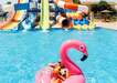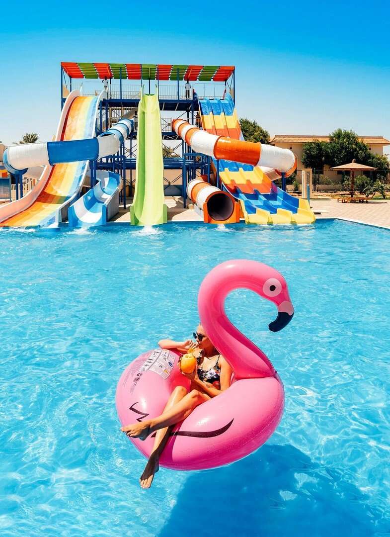 5 medence, ebből 1 fűtött télen. Szabálytalan alakú, folyót imitáló medence, édesvíz, 500–1500 m² közötti területtel, 1,4–1,7 m mélységgel. 2 gyermekmedence, 0,5 m mélységig. Ingyenes napernyők, napozóágyak, matracok és törölközők a medencéknél. 2 teniszpálya világítással (kb. 20 USD/óra), sportfelszerelés kölcsönzhető. Sport és szórakozás: asztalitenisz, minigolf, röplabda, konditerem és fitnesz. 2 játszótér és gyermekjátszó szoba, mini-klub 4–12 éves gyermekek számára. Szórakozás: diszkó és egész évben zajló animációs programok felnőtteknek és gyermekeknek, sportjátékok és aktivitások. Külön díjért: squash pálya, biliárd, vízi sportok a strandon: búvárkodás, snorkelling. Szépségszalon és wellness központ: szauna, jacuzzi, masszázsok.