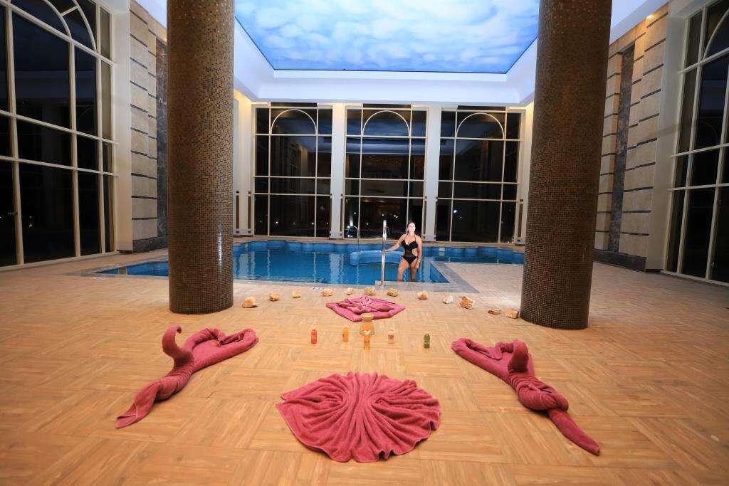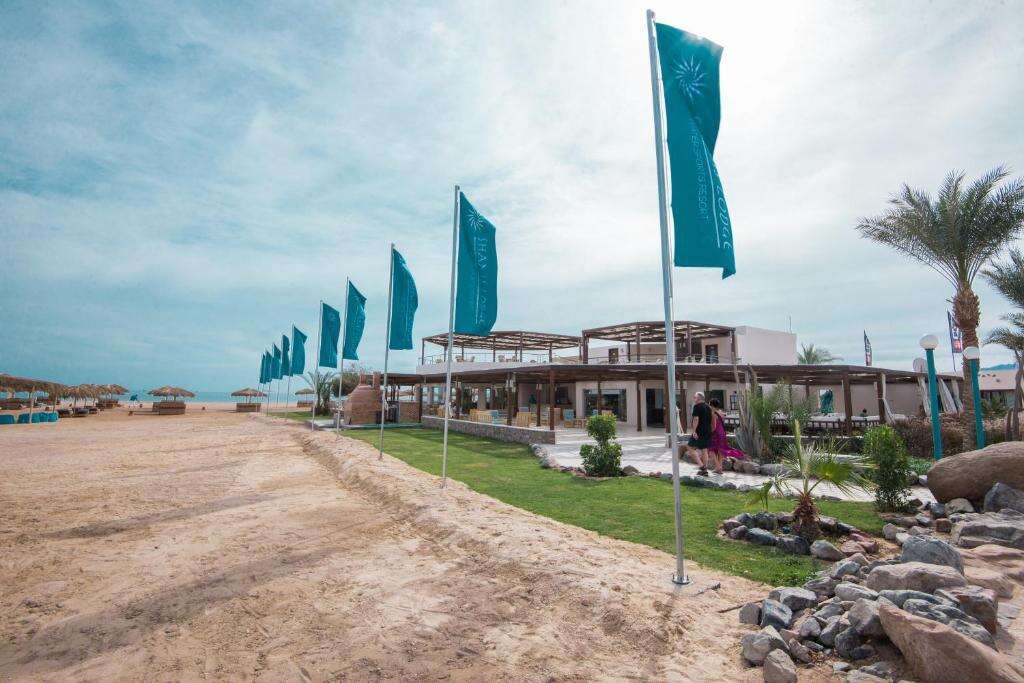 A családbarát étterem afrikai és amerikai ételeket szolgál fel, halal és vegetáriánus lehetőségekkel. A vendégek jóga- és fitneszórák, filmestek és vízi park várja.