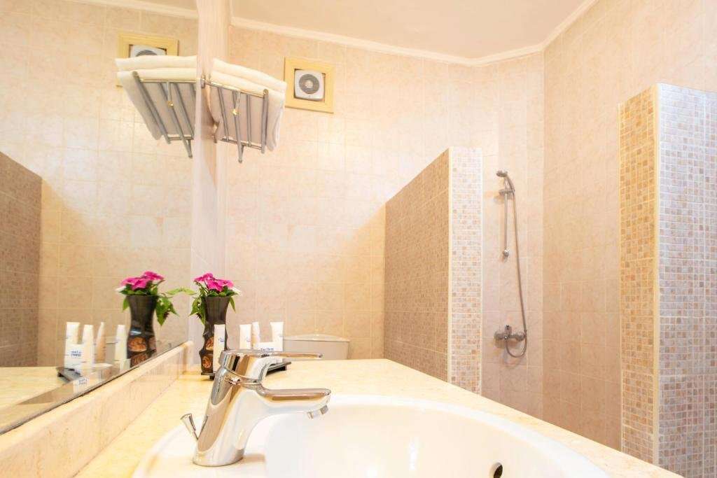 SZOBÁK: A kétágyas komfort szobák (kb. 27 m²) (DC) káddal vagy zuhanyzóval, WC -vel, hajszárítóval, ülősarokkal, széffel, minibárral (térítés ellenében), internet csatlakozási lehetőséggel (térítés ellenében), WiFi hozzáféréssel (térítés ellenében), telefonnal, DVD lejátszó és műholdas TV, egyedileg szabályozható légkondicionáló és központilag szabályozható fűtés, valamint ventilátor, és erkély vagy terasz. MAX. FÉRŐHELY: 3