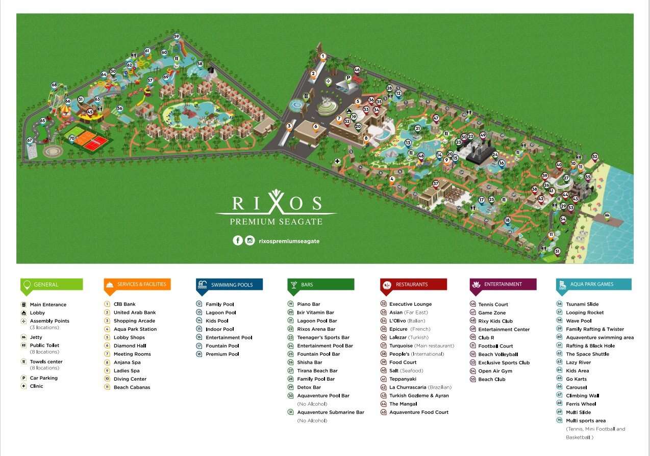 A Rixos Sharm El Sheikh egy 16+ felnőttbarát üdülőhely. Bátorítjuk, hogy hagyja gyermekét a Rixos Premium Seagate Rixy Kids Club-ban, mivel a gyerekek nem tartózkodhatnak a Rixos Sharm El Sheikh területén. A buszjárat a Rixos Sharm El Sheikh-hez minden 15 percben közlekedik, a buszmegállóból, amely a Peoples International Restaurant mellett található a strandon (08:00–00:00).