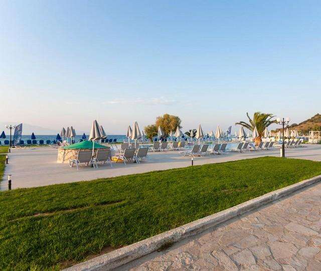 Alykanas település központjától mindössze kb. 200 m-re, közvetlenül a homokos tengerparton (kb. 20 m) épült, 15 épületből álló (lift csak a főépületben), 3 szintes 216 szobás szállodakomplexum. A legközelebbi szupermarket kb. 50 m-re található, a közeli buszmegálló pedig egy kényelmes sétával (kb. 10 perc) elérhető. A település központjában tavernák, bárok, kávézók, üzletek, vendéglők találhatók. Szobáink az épület úgynevezett medencére néző Classic szárnyában és a melléképületben helyezkednek el. A komplexum családoknak is ideális választás.