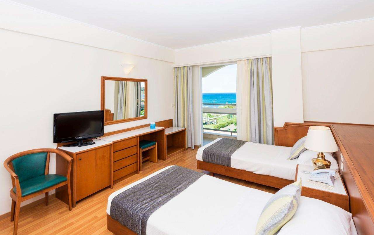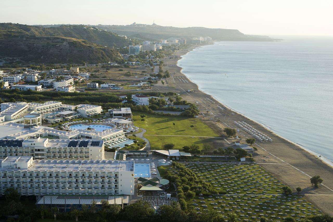 Fekvése: A sziget az egyik legnépszerűbb üdülőhelyén Falirakin épült, 293 szobás, főépületből és több melléképületből álló, rendkívül népszerű szálloda, Faliraki üdülőhely mozgalmas központjától kb. 500 méternyire közvetlenül a homokos tengerparon található, mely a szálloda gondozott pálmafákkal, virágokkal, mediterrán növényekkel teli kertjén keresztül érhető el. Finom homokos, áramlatoktól mentes több kilométer hosszú, lassan mélyülő vizű strandja a helybéliek körében is igen népszerű. A szálloda közelében vízi vidámpark található, környezetében pedig több üzlet, étterem, bár és buszmegálló elérhető. Faliraki központjában minden megtalálható, ami egy jól sikerült nyaraláshoz szükséges: éttermek, tavernák, üzletek, kávézók és sok-sok szórakozóhely.
