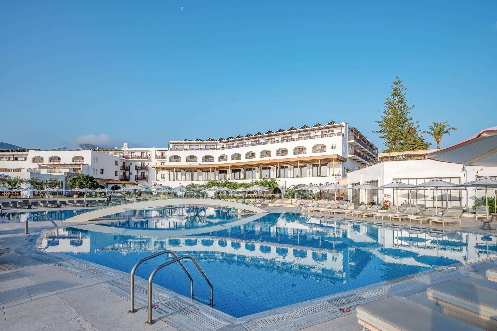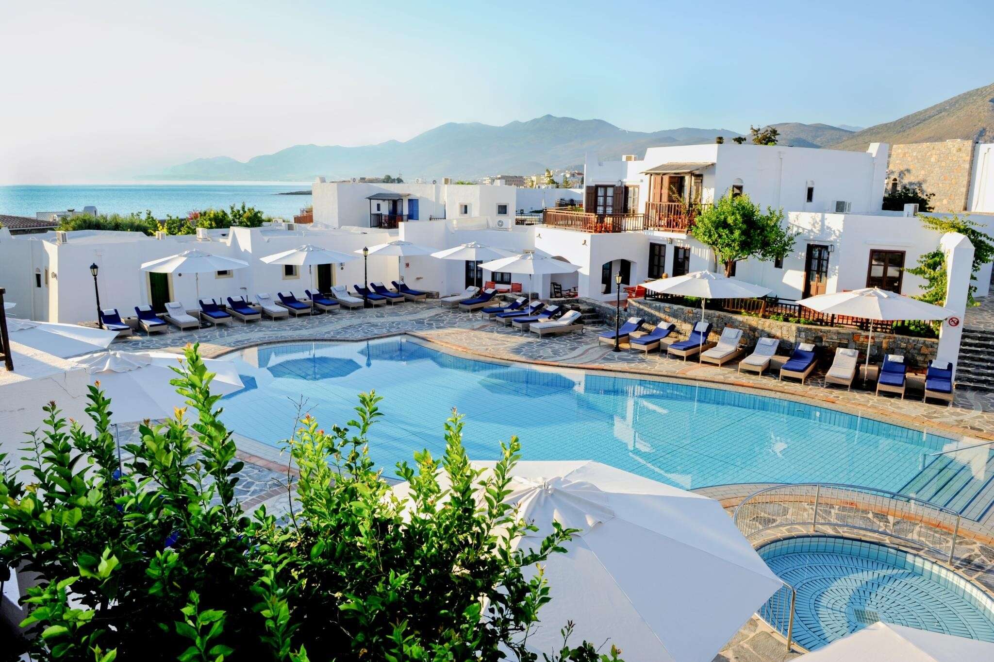 A krétai falu stílusában épült, 5 csillagos szálloda 2 főépületből és több melléképületből áll, és Kék Zászló díjjal kitüntetett stran mellett fekszik. A létesítmény a hagyományt, az eleganciát és az autentikus krétai vendégszeretetet ötvözi gyönyörű környezetben. Gyönyörű kert, aquapark, szolgáltatások széles választéka, számos sportolási lehetőség és változatos gasztronómiai ajánlatok várják a vendégeket. Minden korosztály számára ajánljuk.