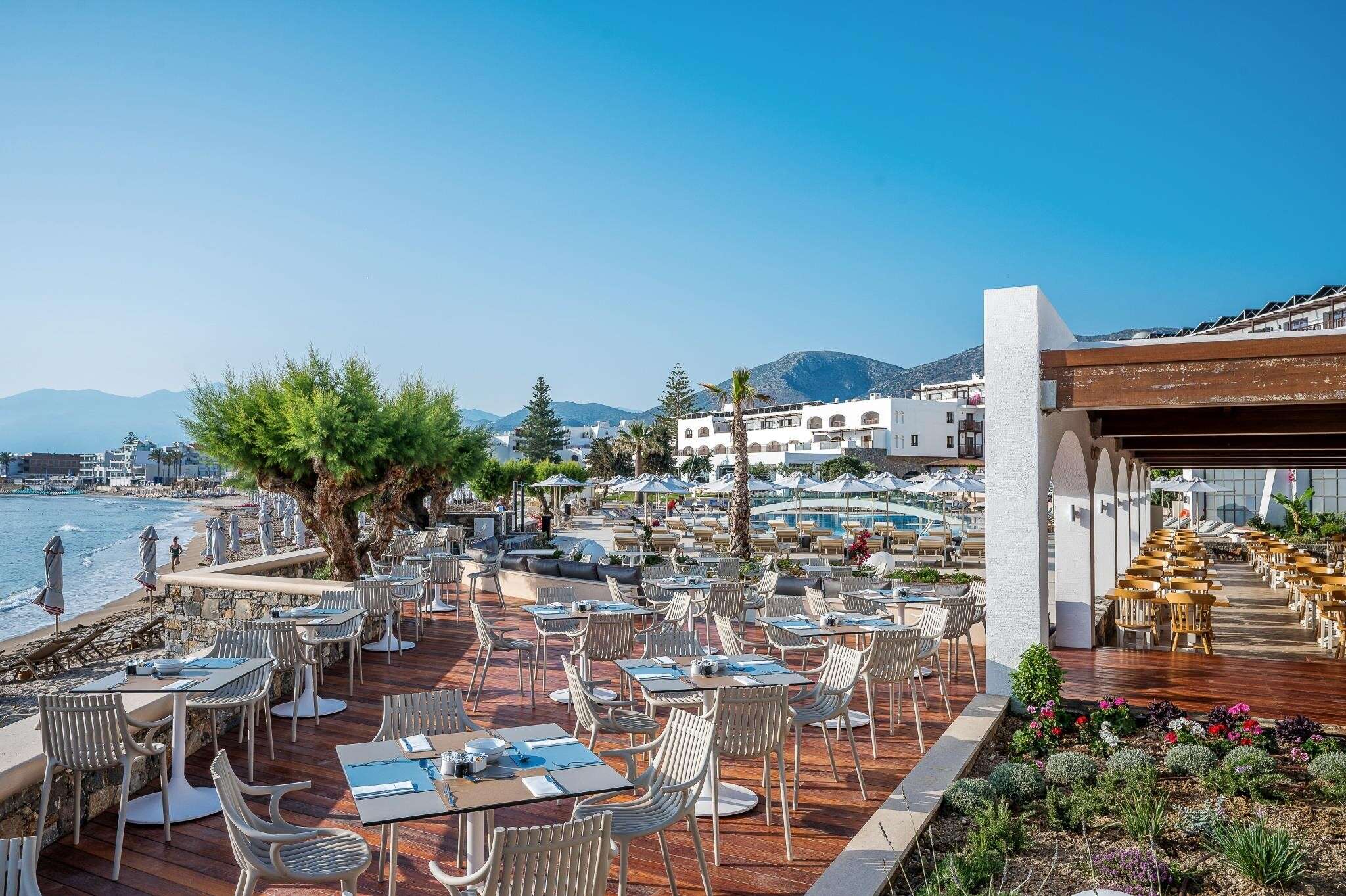 - All Inclusive: minden étkezés büférendszerben, kávé, tea, gyümölcslé és víz reggelinél, üdítők görög sör és bor ebédnél és vacsoránál, késői reggeli lekérésre 06:00 és 07:30 óra között, éjféli snack-ételek 22:00 és 24:00 óra között, snack-bár az aquaparkban: szendvicsek, saláták, pizza, hamburger 12:00 és 18:00 óra között, üdítők és sör 10:00 és 18:00 óra között, 3 snack-point: 11:30 és 18:00 óra között szendvicsek, hot dog, gyümölcsök, turmixok, saláták, A Kourites pool-bárban gofri, palacsinta, fagylalt, a Steki bárban 10:00 és 18:00 óra között, kávé és fagylalt, az aquapark bárjában 10:00 és 18:00 óra között üdítők, gyümölcslevek, saláták, pizza, hot dog, hamburger, fagylalt, a mozibárban (június-szeptember) 20:30 és 24:00 óra között üdítők, sör, bor, alkoholos italok, és snack-ételek, az Adama koktélbárban (csak flnőtteknek) 20:00 és 24:00 óra között snack-ételek és vízipipa (térítés ellenében), a Sima bárban (cska felnőtteknek) napközben snack-ételek, helyi alkoholos és alkoholmentes italok, filters kávé és tea a Vegera lounge-bárban 09:00 és 24:00 óra között, a Ruga és a Kourites pool-bárban 10:00 és 24:00 óra között, az Idaiai bárban 18:00 és 02:00 óra között, valamint a Sima strandbárban és az Adama koktélbárban (mindkettő csak felnőttenek) 10:00 és 18:00 óra között, aperol koktélok és üdítők az Aperol Spritz bárban 10:00 és 22:00 óra között, előzetes foglalással, tartózkodásonként 1x: vacsora a Mademi grillétteremben 18:30 és 21:30 óra között, az Alatsi tenger gyümölcsei, a Pilata görög és a Pithos hagyományos krétai étteremben 18:00 és 22:00 óra között, tartózkodásonként 1x: étkezés az Estia családi étteremben (reggeli 07:30-12:30, ebéd 12:30-17_30, vacsora 18:30-21:30 óra között, az Arismari modern görög étteremben (reggeli 08:00-11:00, ebéd 12:30-14:30, vacsora 18:30-21:30 óra között). Az All Inclusive szállodák szolgáltatásai bizonyos részletekben szállodánként eltérhetnek.