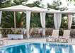 A település központjától kb. 200 m-re épült kétszintes, több épületből álló 45 szobás art hotel növényekkel, fákkal, virágokkal körülvéve (Makris Gialos beach kb. 150 m). A közelben tavernák, kávézók, vendéglők, üzletek találhatók (kb. 300 m).