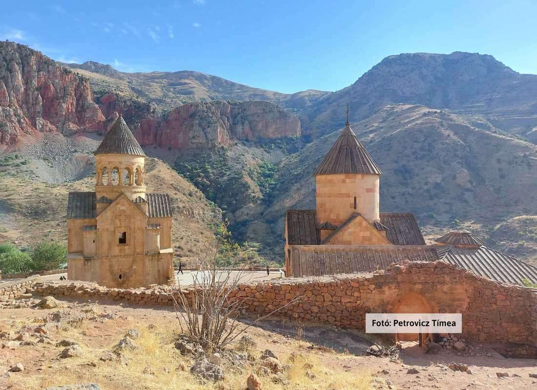 Végül kirándulás a 13. században alapított Noravank apátságba, mely a középkori örmény építészet egyik remekműve. Az apátság az alatta elterülő hegység vörös szikláiból épült, ezáltal a vörös sziklák völgye, az apátság és a mélykék égbolt gyönyörű kontrasztot alkot.