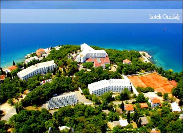 A szálloda Omisaljban, 50 m-re található a kiépített betonos, homokkal feltöltött, és kavicsos strandtól, 1 főépületből (H.Adriatic) és 2 melléképületből ( Dep. Marina & Dep. Primorka) áll, régebbi berendezésűek. Omisalj óvárosa 500 m-re fekszik a szállodától. A szállodából rálátni a rijekai olajfinomító tartályaira. Ez azonban semmilyen módon nem befolyásolja a tengervíz, a levegő vagy a nyaralás minőségét.