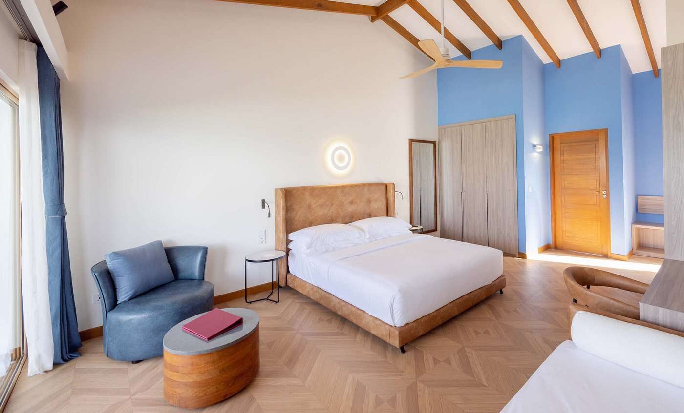 Szobák felszereltsége (beach villa): 50 m2 alapterületű, keleti fekvésű villák közvetlenül az óceánparton. Berendezésükhöz tartozik a légkondicionáló, kanapé, széf, kévá/teafőző, ingyenes Wi-Fi, síkképernyősTV, maldív stílusú félig nyitott fürdőszoba zuhanyzóval piperecikkekkel és hajszárítóval. A privát napozóterasz kerti bútorokkal berendezett.