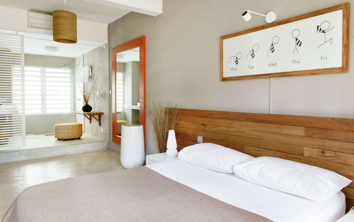Standard szoba: Kb. 24 m2; bútorozott terasszal vagy balkonnal. Benne TV, telefon, minibár, széf, tea- és kávé bekészítés, légkondicionáló, hajszárító, strandtörölköző.