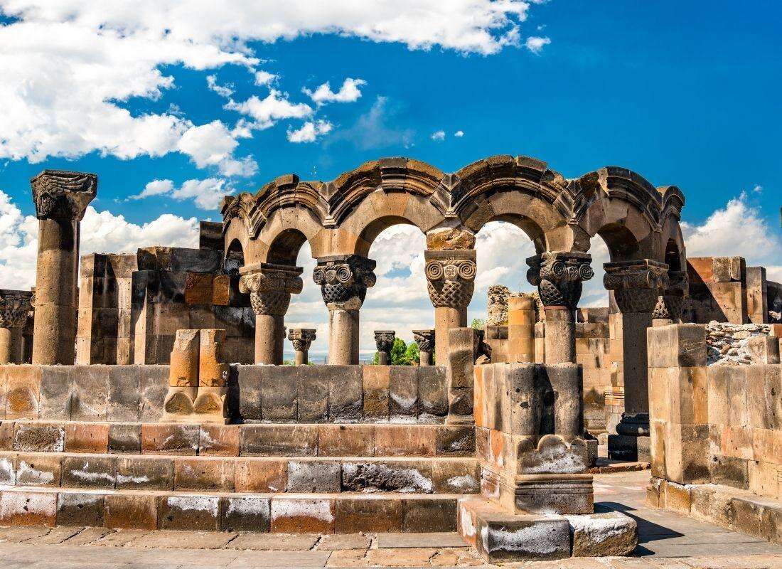 Reggeli után utazás Echmiadzinbe, mely az Örmény Apostoli Egyház központja, és ahol megtekintjük a 3. századból származó főszékesegyházat, amelyet Szt. Gergely építtetett és a Világörökség része. Az egyházi múzeumban találhaó az a lándzsa, mellyel a hagyomány szerint Jézus Krisztust átszúrták a kereszten. Úton Jereván felé megállunk a 7. századi Zvartnots templomromnál, melyet 930-ban egy földrengés pusztított el, és egészen a 20. századi felfedezéséig elveszett a történelem rengetegében.