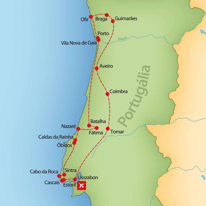 Fedezze fel Portugália gazdag kulturális örökségét, történelmi városait és lélegzetelállító tájait egy felejthetetlen körutazás során! Lisszabon vibráló fővárosától a borairól híres Portóig, a középkori falvak csendjétől az Atlanti-óceán partvidékének drámai szépségéig ez az utazás páratlan élményeket kínál. UNESCO világörökségi helyszínek, lenyűgöző kolostorok, festői halászfalvak és Portugália barátságos vendégszeretete vár rád – tarts velünk ezen a varázslatos utazáson!