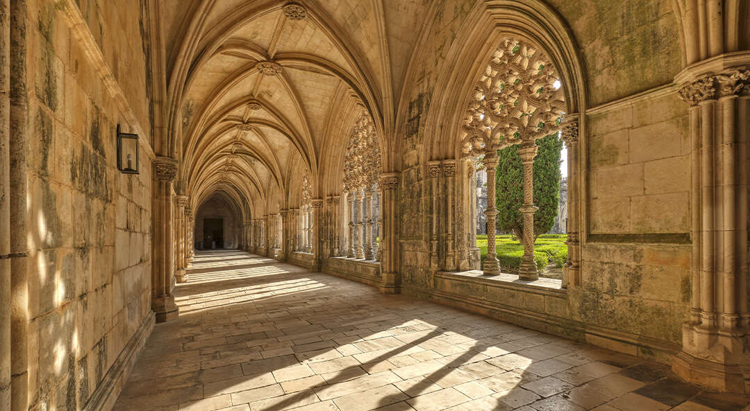 katedrálisát Batalhában. Lenyűgöző építészeti remekmű a templom és annak kerengője, de még ezt is felülmúlja a Befejezetlen Kápolna. Nem véletlen a „kőbe vésett csipke” becenév. A portugál nemzeti stílus, amely Mánuel királyról kapta a nevét, itt a gótikával fonódik össze. Érthető, hogy ez is az UNESCO Világörökség Listáján szereplő látványosság, csakúgy, mint Tomar, Porto és Guimaraes. Tovább utazva az alcobacai