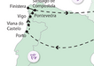 Fakultatív borkóstoló vacsorával: 50 €. 2. NAP PORTO KINCSEI UTÁN IRÁNY VIANA DO CASTELO A napot a történelmi Ribeira negyed felfedezésével kezdjük, ahol csodás kilátás nyílik a Douro folyóra és a híres I. Lajos hídra (Dom Luís I híd). Egy rövid séta után felfedezzük a város folyóparti részét, a Cais da Ribeira rakpartot, ahol a színes házak és az autentikus hangulat garantáltan elbűvölnek minket. A templomok kedvelői számára a következő állomás a gyönyörű Szent Ferenc-templom (Igreja de São Francisco), ahol megcsodálhatjuk a gótikus stílusú templom belső aranyozott díszítéseit. A városnézést a Tőzsdepalota (Palácio da Bolsa) látogatásával zárjuk, ahol a neoklasszikus épület eleganciája és a híres Arábiai Terem varázslatos atmoszférája teszi felejthetetlenné a programot. Ezután szabadprogram következik. Délután vonattal Viana do Castelóba utazunk, ahonnan másnap megkezdjük zarándok túránkat. Túránk során alberguek 8-40 fős hálótermeinek emeletes ágyain fogunk aludni. A szállásokon közös fürdőszoba (női, férfi külön), wifi, mosó- és szárítógép is van. 3-5. NAP A PORTUGÁL CAMINO KEZDETE ÉS HATÁRÁTKELÉS Első túrázós napunkon bepakoljuk és felvesszük hátizsákjainkat, majd a túravezető hasznos tanácsokkal látja el a csoportot. Minden nap 20–28 km-t kell megtennünk a következő szálláshelyig. Napközben mindenki az egyéni tempójában haladhat, nem együtt közlekedik a csapat. Mindenki a saját Caminóját élheti meg! A délutáni órákban érkezik meg mindenki Caminhába. Elfoglaljuk ágyunkat, fürdés, majd egy kis pihenés. Este a környék éttermeiben lehet vacsorázni, majd sétálni az óceán parti kisvárosban. A következő nap már a határ túloldalán, Spanyolországban folytatjuk utunkat, ahova akár egy rövid hajóút után is megérkezhetünk. Az út során megcsodálhatjuk a két ország határvidékének festői tájait, ahol a Mino folyó összeköti a két különböző kultúrát és tájat. A környező hegyek, a zöldellő dombok és a tenger közelsége egyedülálló panorámát tárnak elénk. Este a csodálatos Vigo-öböl közelében szállunk meg. A táj természeti szépsége és a tenger közelsége igazán vonzóvá teszi ezt a helyet. Másnap elérjük Vigo városát, mely Spanyolország északnyugati részén, Galícia tartományában, az Atlanti-óceán partján található. A halászváros központja egy kedves történelmi negyednek ad otthont, amely kontrasztban áll a kikötő modern létesítményeivel. A település gyönyörű, Galícia legfontosabb öble, Európa egyik fő kikötője. 6-9. NAP ZARÁNDOKNAPOK GALÍCIÁBAN, PADRÓN FELÉ Következő napon egy nagyon szép, változatos és érdekes útszakaszon vezet utunk a Galíciai-óceáni partvidéken Redondela településig, amely kiváló természeti és kulturális örökséggel rendelkezik. A „Viaduktok Városa” néven ismert, mivel két jelentős vasúti híd szeli át a várost. A következő napon galíciai falvakon és erdőkön át haladva érkezünk el egészen Pontevedráig. Onnan utunk másnap Caldas de Reisig vezet, amely egy gyógyforrásairól híres történelmi város. Az ezt követő napon Padrónt vesszük célba, amely Szent Jakabhoz köthető egyházi helyszín. Élete során itt hirdette az Evangéliumot és a legenda szerint itt volt a Szent Jakab földi maradványait szállító hajó kikötési helye. Az oltárkő, ahol a legenda szerint a hajó kikötött, még mindig létezik: az úgynevezett „Pedrón” a Santiago templomban található. Ezeken a napokon is 25 km körüli távolságokat kell leküzdenünk. 10. NAP AZ UTOLSÓ LÉPÉSEK SZENT JAKAB SÍRJÁHOZ Megkezdjük az utolsó 25 km-es etap megtételét.