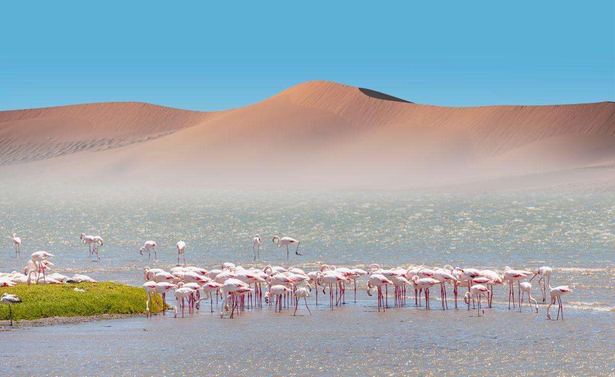 A mai napon félnapos kirándulás teszünk Walvis Bay-ben: hajókirándulásra indulunk a lagúnán, érintve egy fókakolóniát, és remélhetőleg a sokszínű helyi állat- és madárvilág számos más példányával, köztük flamingókkal, delfinekkel, sőt bálnákkal is találkozunk. Délután szabadidő vagy fakultatív programok: kirándulás Sandwich Harbourba, Namíbia egyik legjelentősebb lápvidékére vagy quad-túra a Namib-sivatagban (ár létszámtól függően változó). A program után visszatérünk Swakopmundba, rövid városnézés, majd transzfer a szállodába.