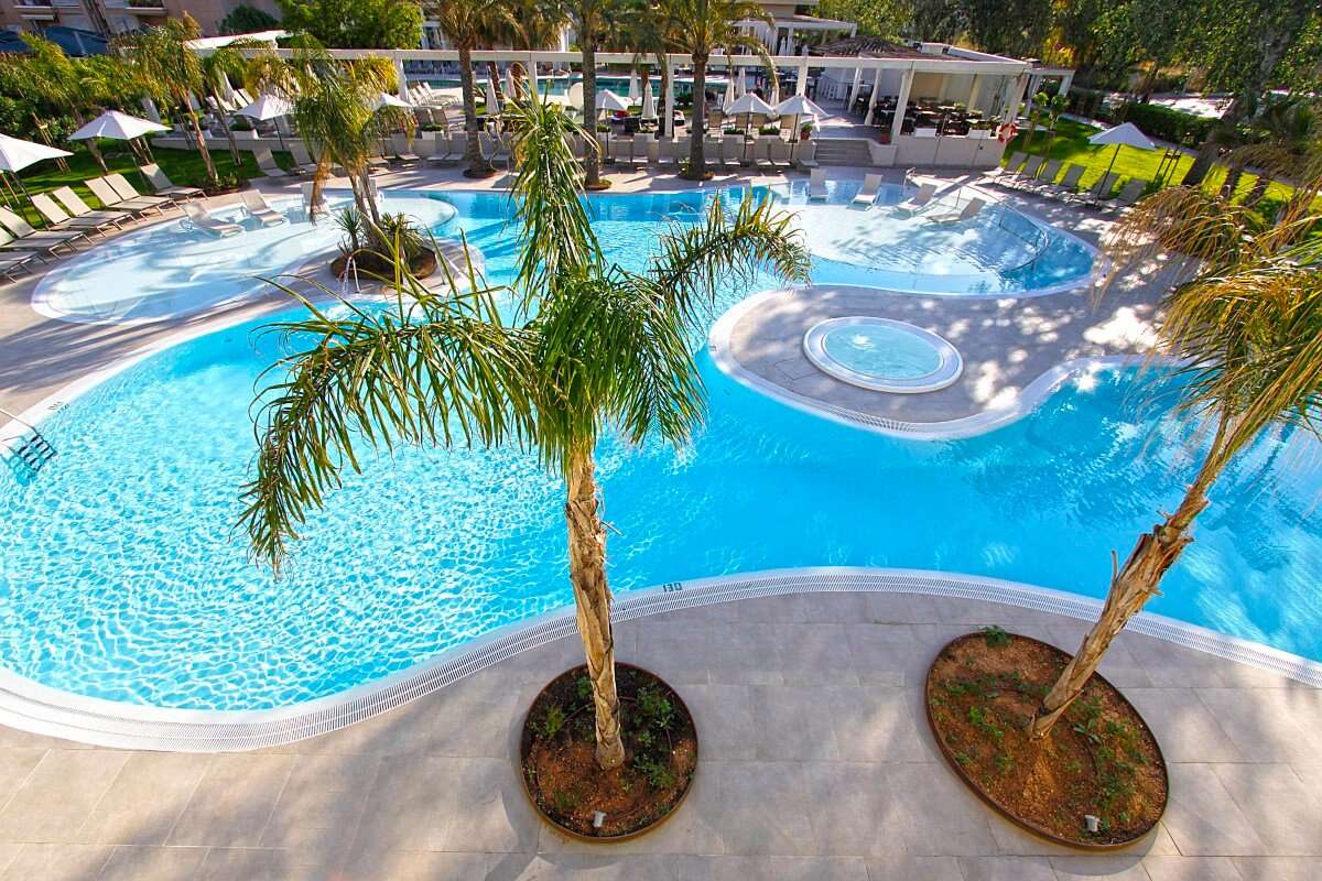 2 medence, egyenként kb. 150 m², gyermekmedence, kb. 15 m², napernyők és napozóágyak a medencénél ingyenesen, törülközők kaució ellenében, minigolf; játszótér gyerekeknek, esti szórakoztató programok élőzenével; felár ellenében: wellnessközpont: fedett medence, kb. 50 m², fitneszterem, jacuzzi, törökfürdő, finn szauna, masszázsok; vízi sportok a strandon.