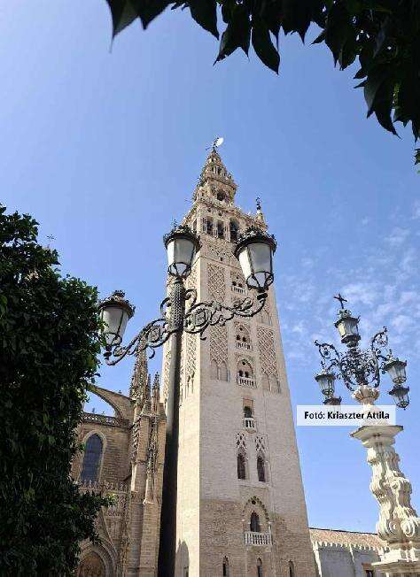 7. nap: Cádiz - SevillaA reggeli és kijelentkezés után buszra szállunk, irány Sevilla. Közös városnézés a királyok városában. Látogatás az egykori EXPO területen, az ultramodern épületek között, a Makovecz-ház megtekintése (csak kívülről). Fényképezés Sevilla világkiállítási színhelyén, a Mária-Lujza Park-ban, az impozáns kiállítási palotáknál. Városnéző séta az óvárosban. A dohánymanufaktúra impozáns épületétől séta a Giraldaig, a mór mecsetből átépített katedrálishoz, mely mindmáig a világ harmadik legnagyobb katedrálisa. A narancsudvar, az egykori mecsettoronyból kialakított harangtorony (feljutás egyénileg) megtekintése a katedrálissal, melyben Kolombusz Kristóf sírja is nyugszik. Séta a katedrális mellett kezdődő Santa Cruz negyedben, mely Andalúzia (és a világ) egyik legépebben fennmaradt, hatalmas területű, kompakt egységet képező történelmi arab óvárosa. A medina szűk, kanyargós utcái megannyi kincset rejtenek: finom miliővel megáldott apró terek, virágdíszes patiók, kecses épületek, megannyi kovácsoltvas remekmű, apró üzlet…