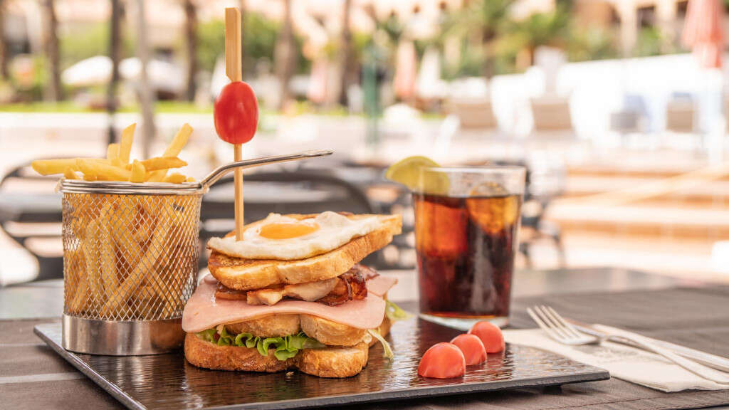 • A Coral Compostela Beach nemrég felújított büféétteremmel várja önt, ahol svédasztalos reggelijét, ebédjét és vacsoráját fogyaszthatja el. Az étterem rendelkezik egy hatalmas terasszal is, ahonnan gyönyörű kilátás nyílik a medencére. • Büféreggeli: finom és változatos svédasztalos reggeli várja, amely különféle kenyereket, péksüteményeket, sajtokat, felvágottakat, friss gyümölcsöket, zöldségeket tartalmaz. A reggelihez gyümölcsleveket, smoothie-kat, joghurtokat, müzliket, lekvárokat is választhat. • Ebéd és vacsora: Változatos svédasztalos ebéd és vacsora várja az étteremben, különféle meleg- és hideg ételekkel. • Pepe's Bodega: Tipikus mediterrán konyha várja a Pepe's Bodegában, ahol a kiváló ételeket fogyaszthat, valamint választhat salátákból, tésztaételekbők és pizzákból is. • Medence bár italokat és harapnivalót kínál napközben önnek. Külső terasszal várja, ahol italokat és koktélokat kínálnak. Az esti szórakoztató programokat is a bárban találja. • Megjegyzés: A Pepe's Bodega és a Medencebár is lehetőséget nyújt, hogy ebédjét vagy vacsoráját a hotelszobájában élvezhesse.