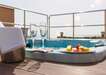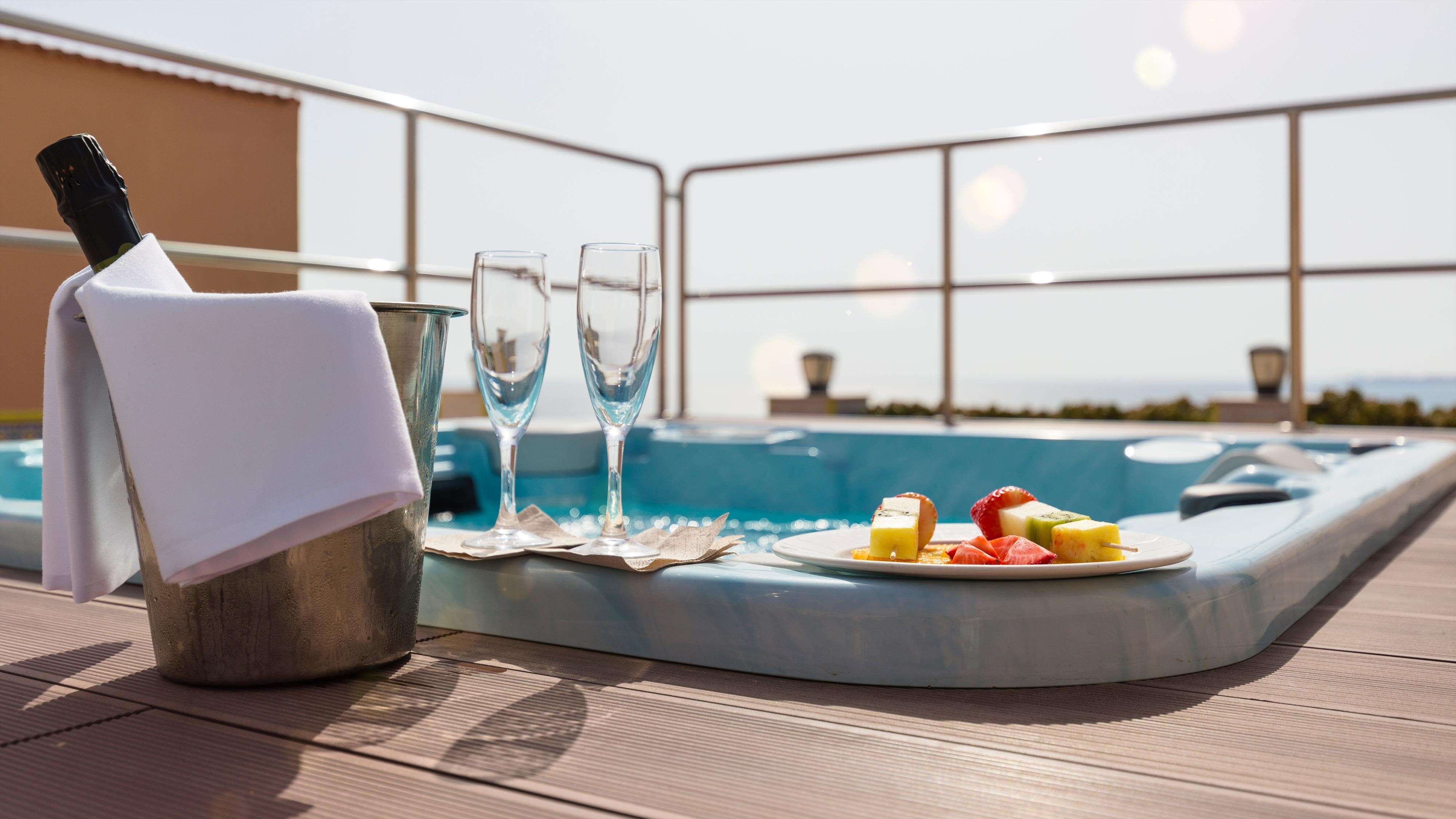 medence pezsgőfürdővel és csúszdákkal (napágyak, napernyők ingyenesen, törölközők kaució ellenében)
