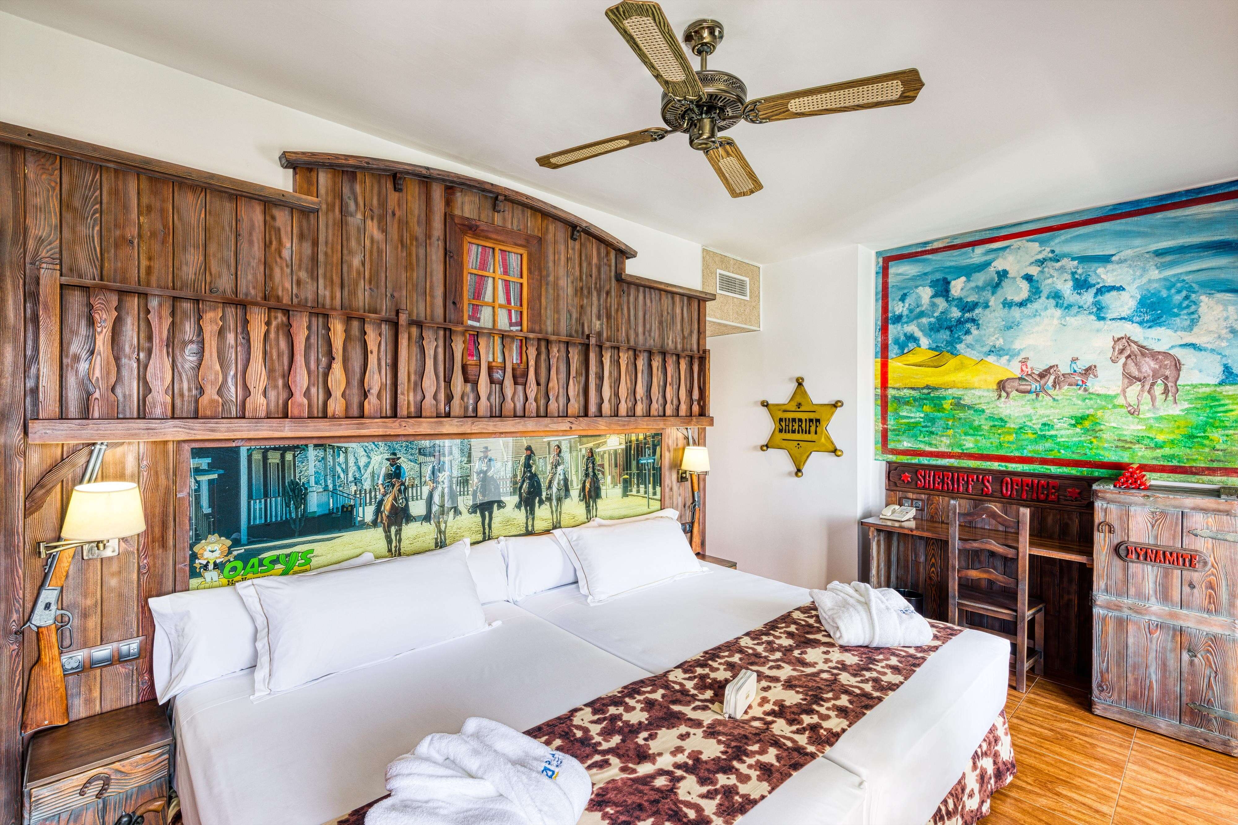 családi szobák - westernd stílusú tematikus szobák, kisebb gyermekek számára kocsi formájú emeletes ágy