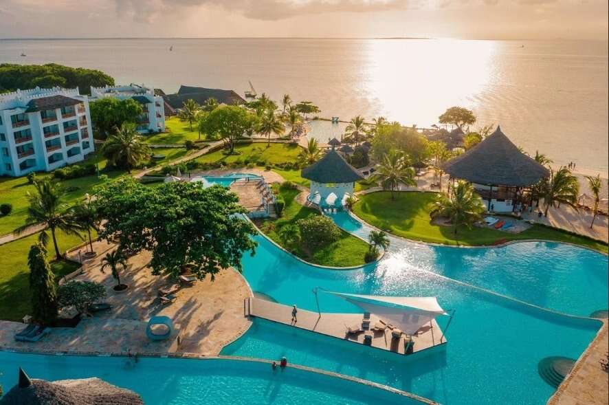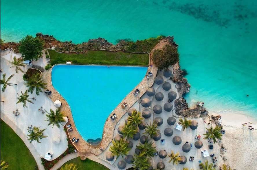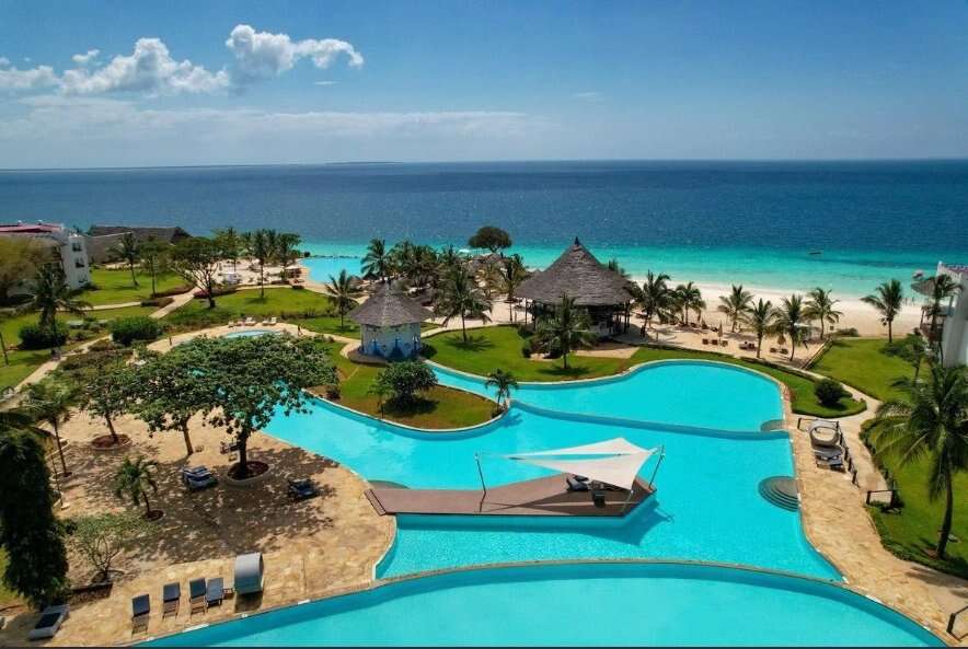 Exkluzív, több épületből álló szállodakomplexum egy trópusi kertben, gyönyörű tengerparton, a sziget északnyugati partján, Nungwi csendes falujában, a repülőtértől kb. 58 km-re.