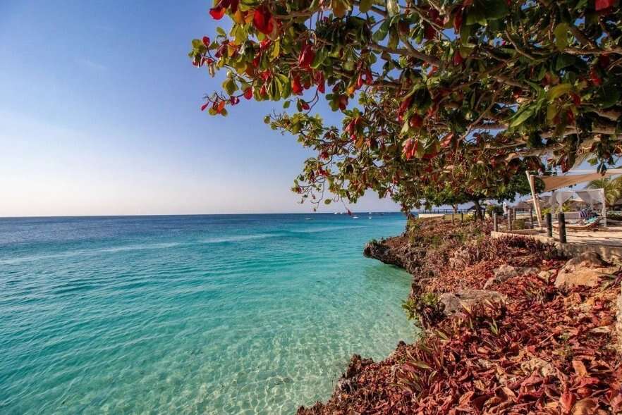 A gyönyörű, fehér homokos, lankás nungwi-i tengerparti strand közvetlenül a szálloda mellett található; a napágyak és napernyők ingyenesen vehetők igénybe a szállodának fenntartott területen.