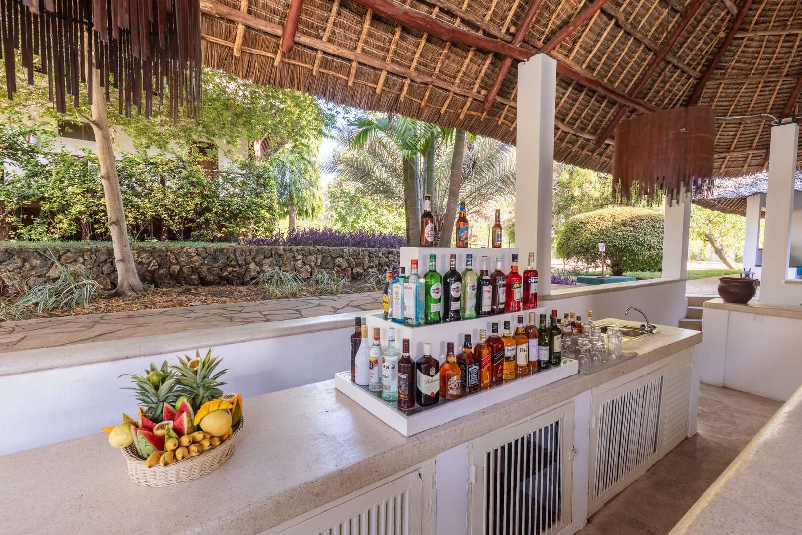 A hotelben 4 étterem található: Kijijii főétterem terasszal - svédasztalos étkezés, pincérszolgálat, nemzetközi, afrikai és tengeri ételek. Pizzamore - à la carte, olasz konyha és pizza, ebéd- és vacsoraidőben nyitva (előzetes foglalás szükséges), gyermekülés és gyermekmenü, vegetáriánus ételek. La Grand Blue az óceánra néző sziklán - à la carte, tenger gyümölcsei, feláras étterem (előzetes foglalás szükséges). A maszáj falu területén található étterem - szuahéli konyha, tábortűz, grillezés, hetente kétszer nyitva maszáj esténként. Egy fagylaltozó és 4 bár: Zanzi bár, 3 swim-up bár.