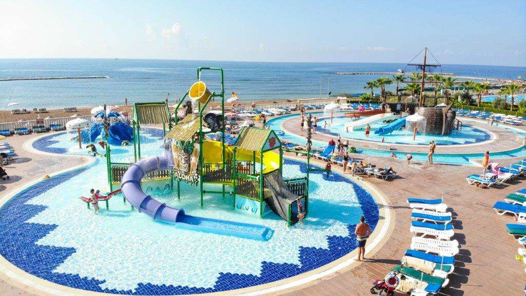 Felnőtt és gyermek medencék napozóágyakkal és napernyőkkel, külön medence a medencekapcsolatos szobákhoz, 2 étterem, bárok, nappali és esti animációs programok az Eftalia Island részen, showműsorok, élő zene bizonyos napokon, diszkó, miniklub (4-12 éveseknek), játszótér, fitneszterem, aerobic, vízi torna, vízi labda, strandröplabda, asztalitenisz, különböző versenyek, szauna, wifi elérhetőség. A strandon napozóágyak és napernyők és strandtörölközők (de csere térítés ellenében) ingyenesen állnak a vendégek rendelkezésére.