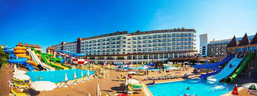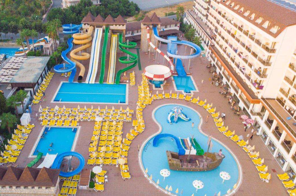 Felnőtt és gyermek medencék napozóágyakkal és napernyőkkel, medence csúszdákkal, 2 étterem, 4 bár, nappali és esti animációs programok, showműsorok, élő zene bizonyos napokon, diszkó, miniklub (4-12 éveseknek), játszótér, fitneszterem, aerobic, vízi torna, vízi labda, strandröplabda, darts, asztalitenisz, foci, kosárlabda, különböző versenyek, török fürdő, szauna, wifi elérhetőség.